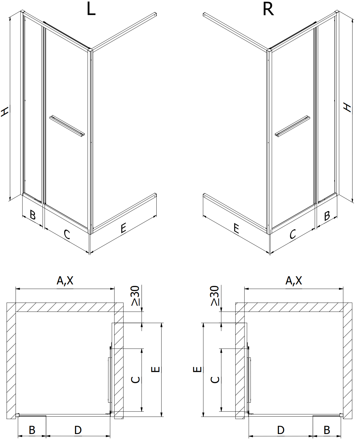 Minimālais attālums no sienas līdz vadotnēm ir 30 mm