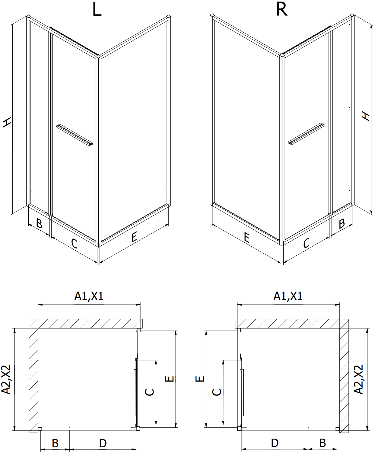 Dušas kabīnes, durvis un sienas ir standarta variantā pielāgotas uzstādīšanai uz noteiktu izmēru dušas paliktņiem. Tieši šie izmēri ir norādīti produkta nosaukumā vai aprakstā. Tomēr jāņem vērā, ka elementu faktiskie izmēri var nedaudz atšķirties no nominālajām vērtībām. Plānojot uzstādīšanu tieši uz grīdas, ieteicams rūpīgi pārbaudīt ārējos izmērus un elementu izvietojumu saskaņā ar tehnisko zīmējumu.