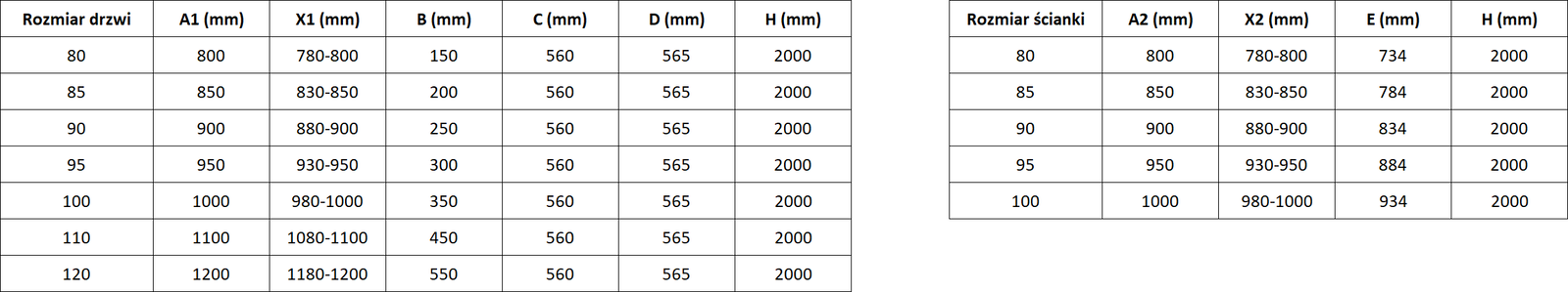 Izmērs: 80x100 cm (durvis 80 cm, siena 100 cm)