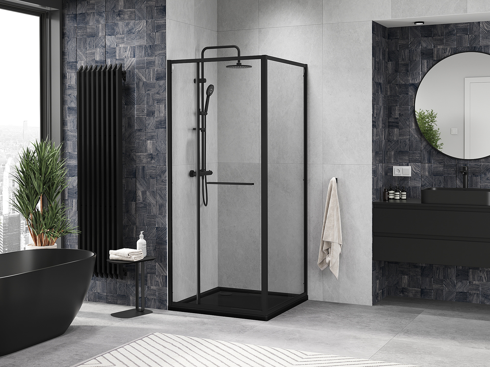 Mexen Rio dušas kabīne kvadrātveida 90 x 90 cm, caurspīdīga, melna - 860-090-090-70-00