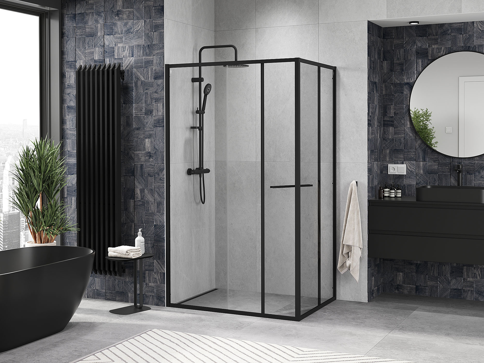Mexen Linea bīdāmās dušas kabīne 120 x 80 cm, caurspīdīga, melna - 8E1-120-080-70-70