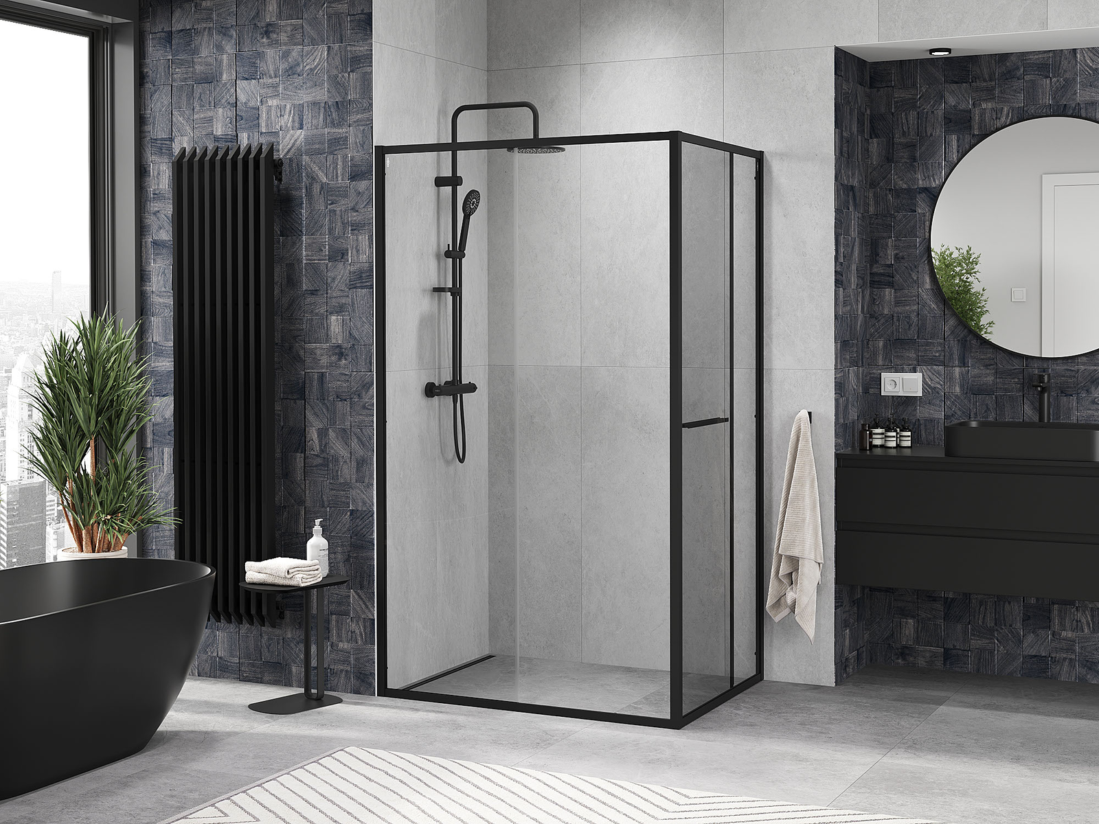 Mexen Rio dušas kabīne kvadrātveida 90 x 90 cm, caurspīdīga, melna - 860-090-090-70-00