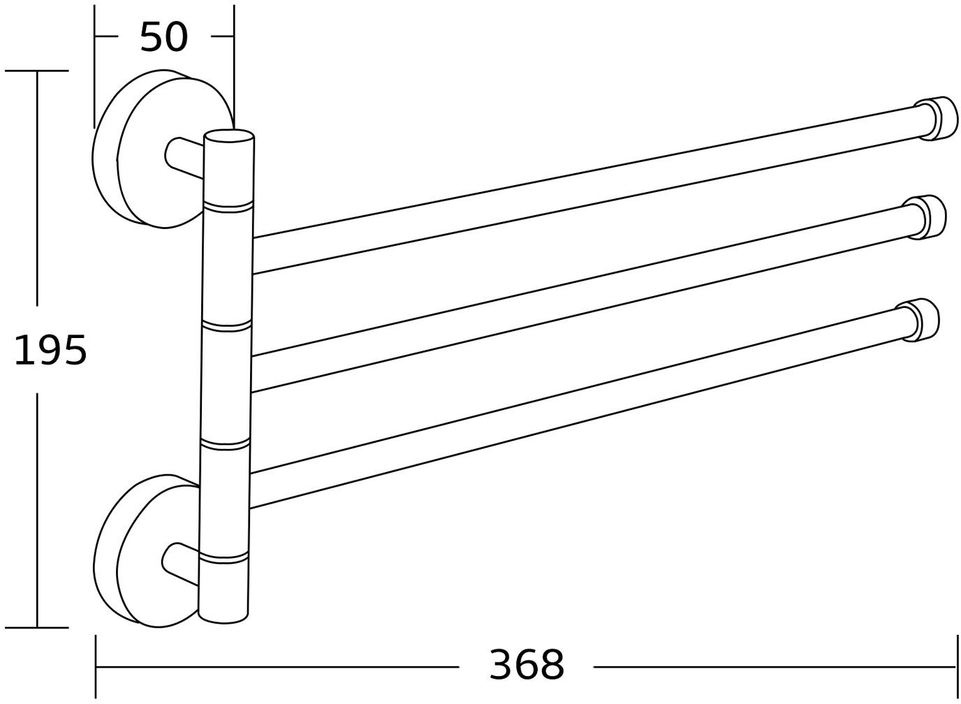 Mexen Inny trīskāršs rotējošs dvieļu pakaramais, melns - 7039243-70
