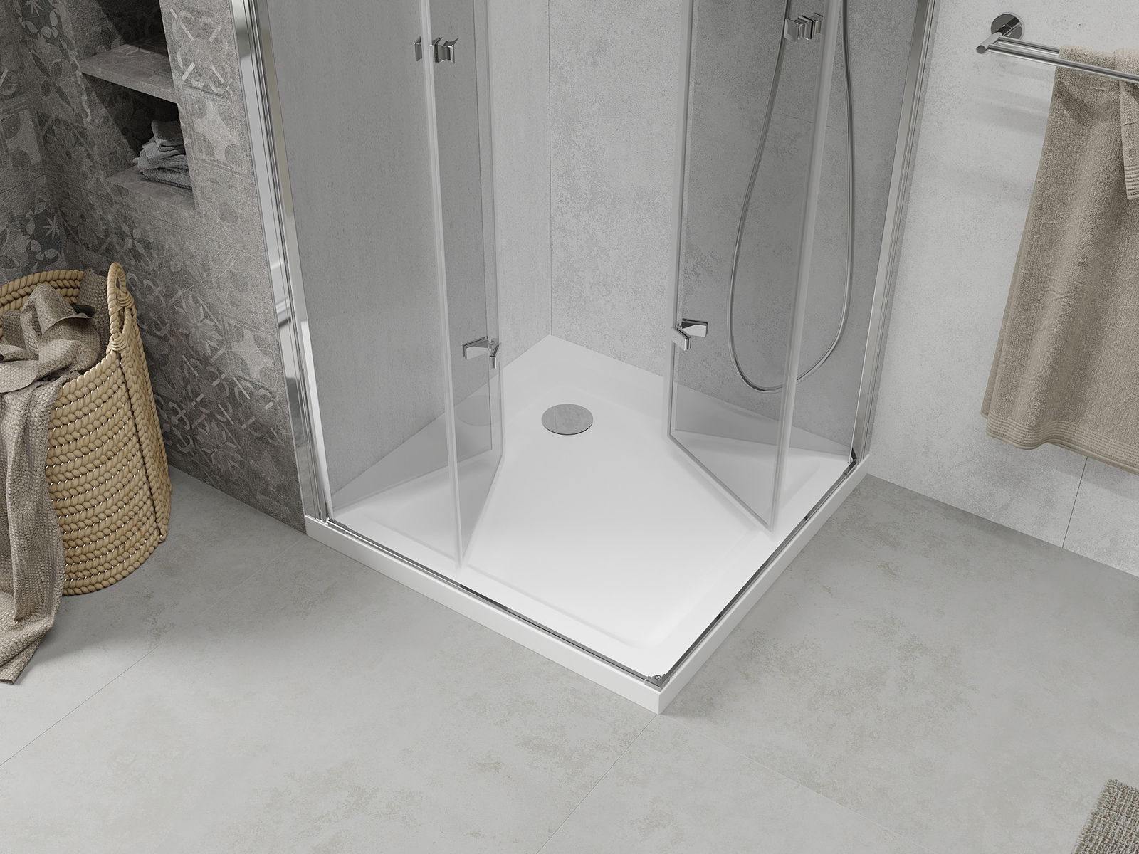 Iespēja salocīt durvis gan uz āru, gan uz iekšpusi, ļauj iegūt vairāk vietas, kad duša netiek izmantota. Tas ir ideāls risinājums mazākām vannas istabām, maksimāli izmantojot pieejamo telpu.
