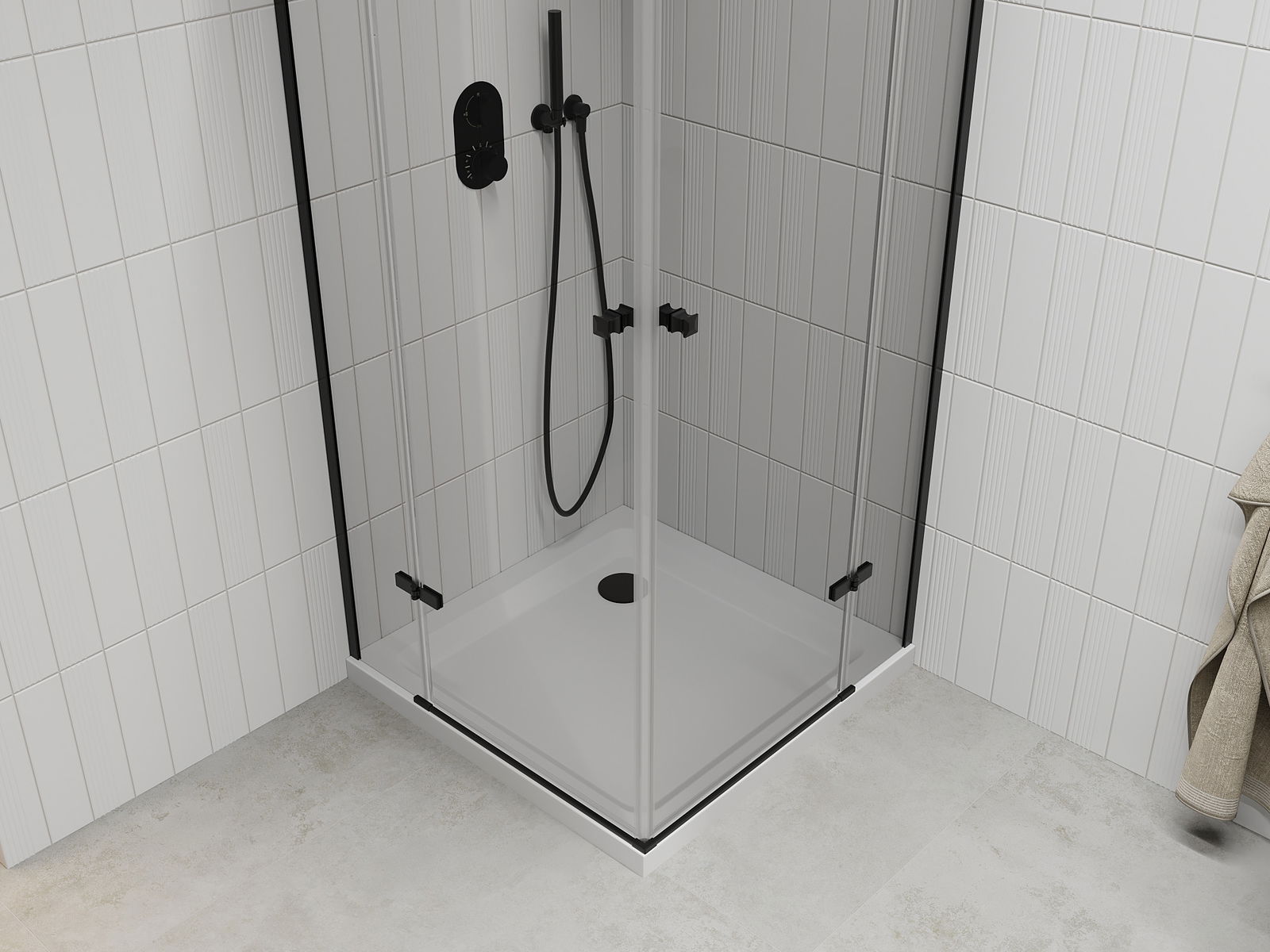 Mexen Roma Divu daļu duškabīne ar veramām durvīm 80 x 80 cm, caurspīdīga, melna + Flat dušas paplāte - 854-080-080-70-02-4010B