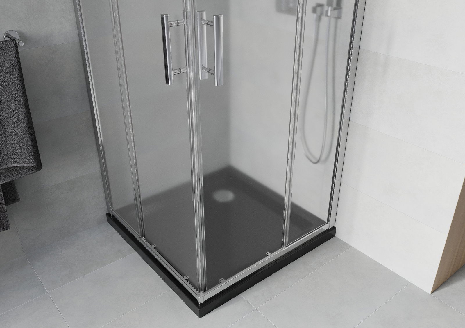 Mexen Rio dušas kabīne kvadrāta 80 x 80 cm, matēts, hroms + Flat paplāte, melns - 860-080-080-01-30-4070