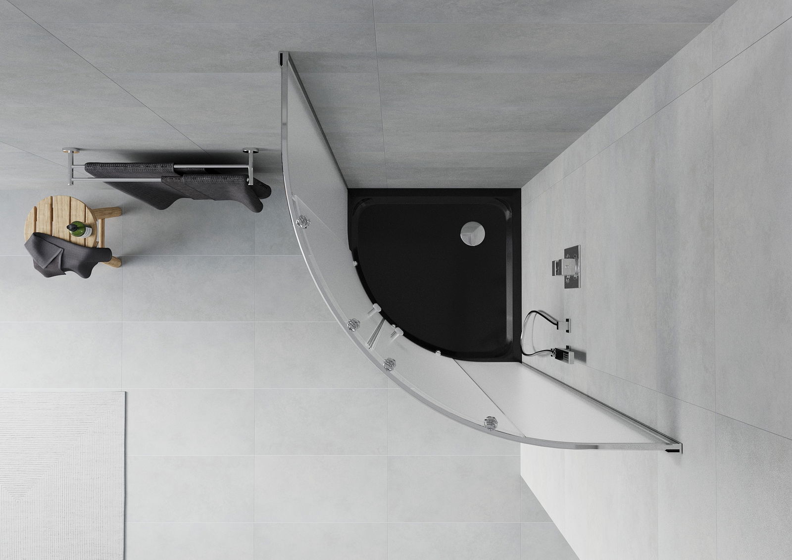 Mexen Rio duša kabīne, pusapaļa 80 x 80 cm, matēts, hroms + Flat paplāte, melna - 863-080-080-01-30-4170