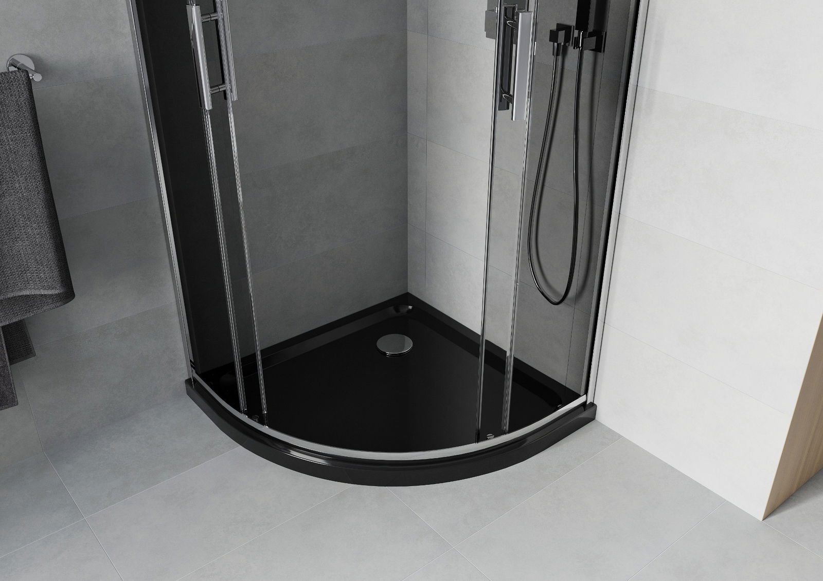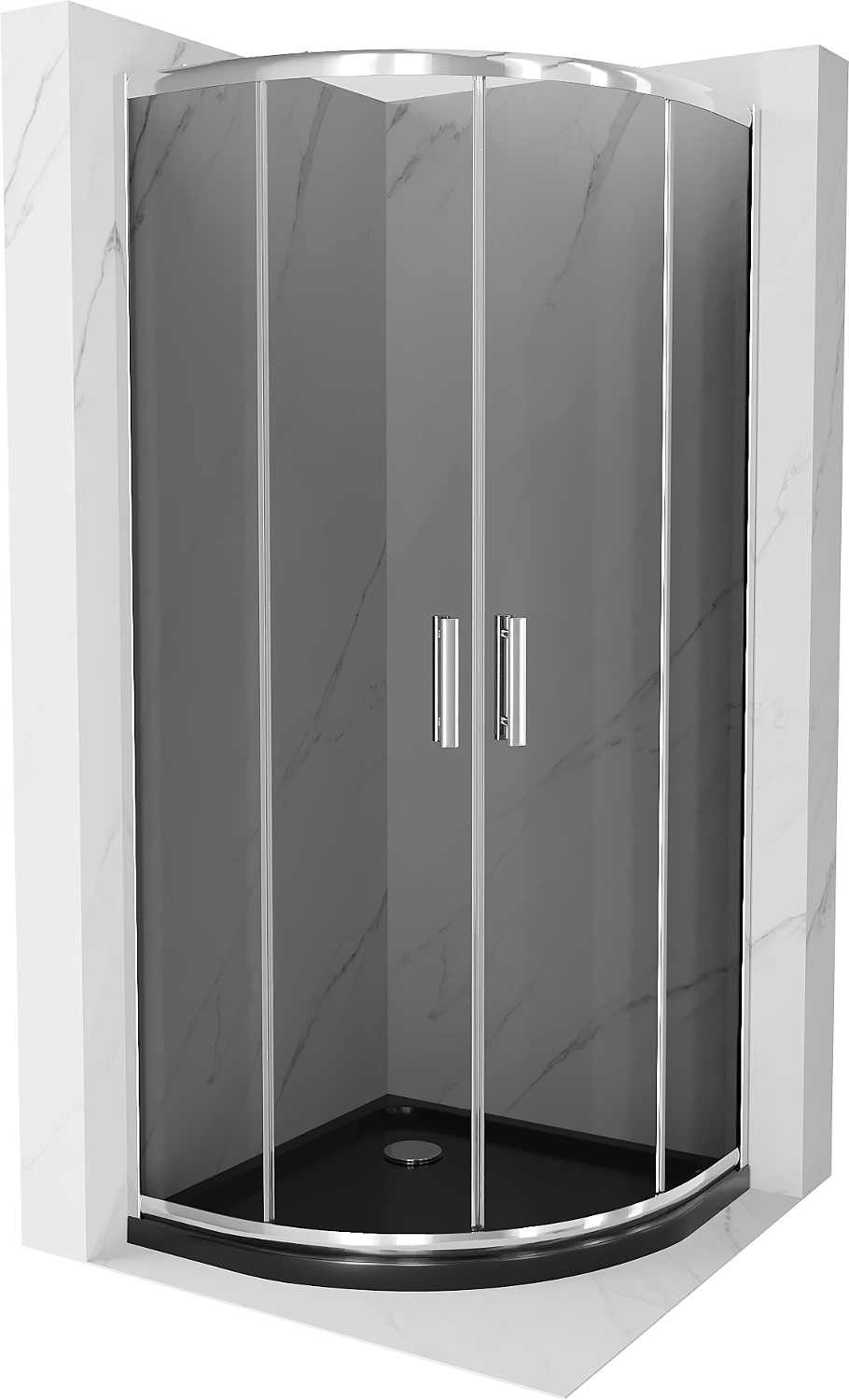 Mexen Rio pusapaļais dušas stends 80 x 80 cm, grafīts, hroms + plāns dušas paliktnis, melns - 863-080-080-01-40-4170