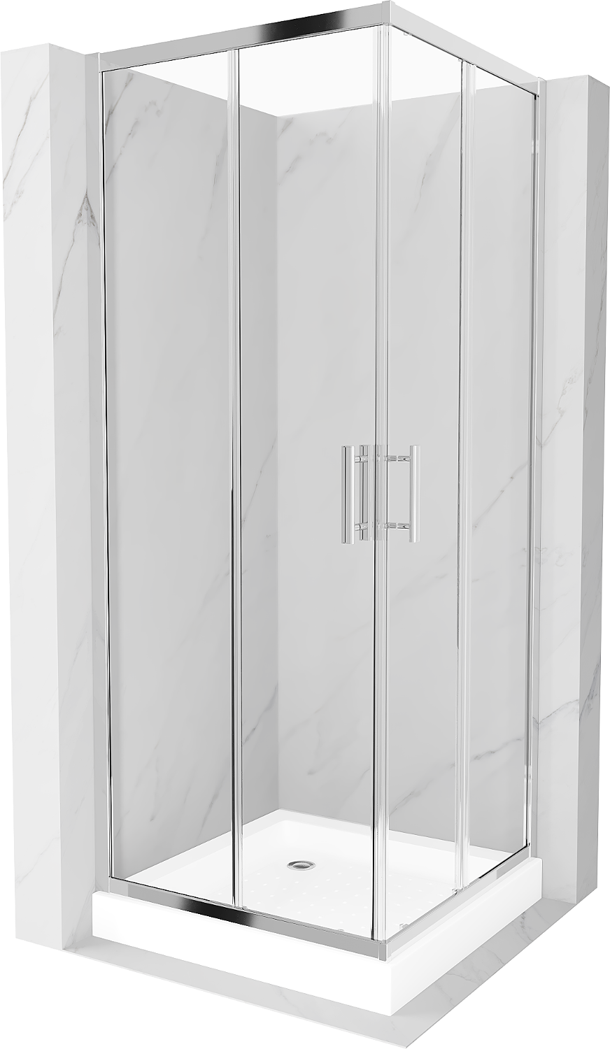 Mexen Rio kvadrātiska dušas kabīne 80 x 80 cm, caurspīdīga, hroma + dušas paliktnis, balts - 860-080-080-01-00-4510