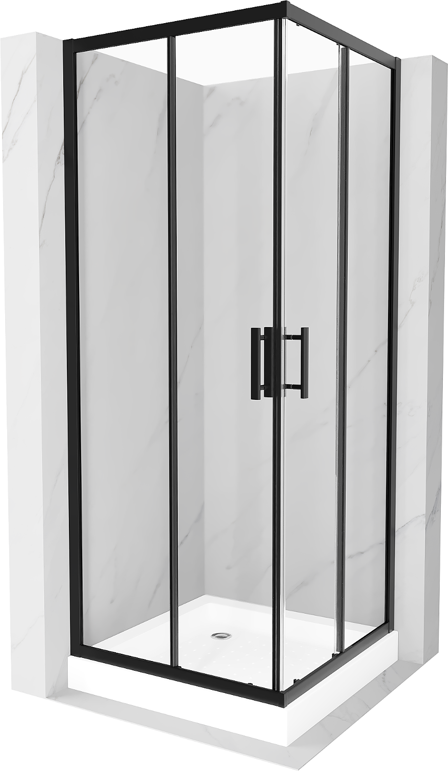 Mexen Rio kvadrātveida dušas kabīne 80 x 80 cm, caurspīdīga, melna + paliktnis, balts - 860-080-080-70-00-4510