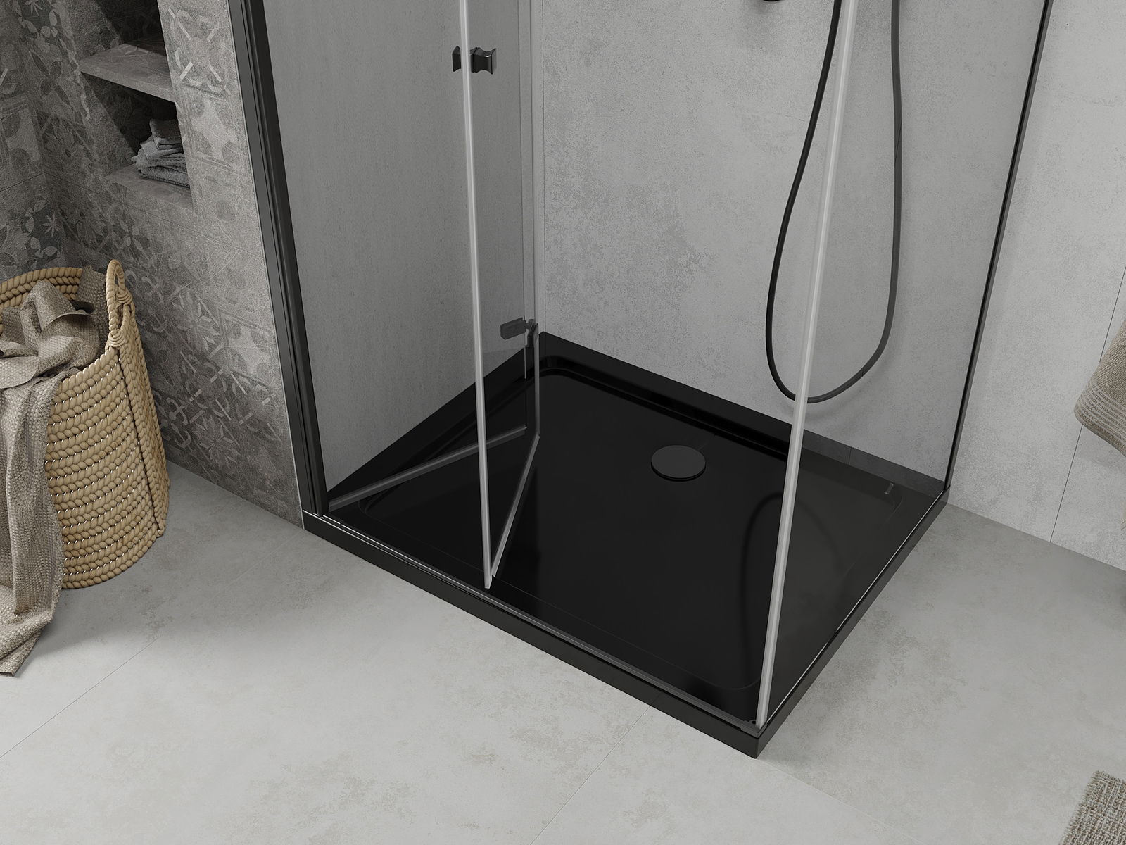 Mexen Rio dušas kabīne kvadrātveida 90 x 90 cm, caurspīdīga, melna - 860-090-090-70-00