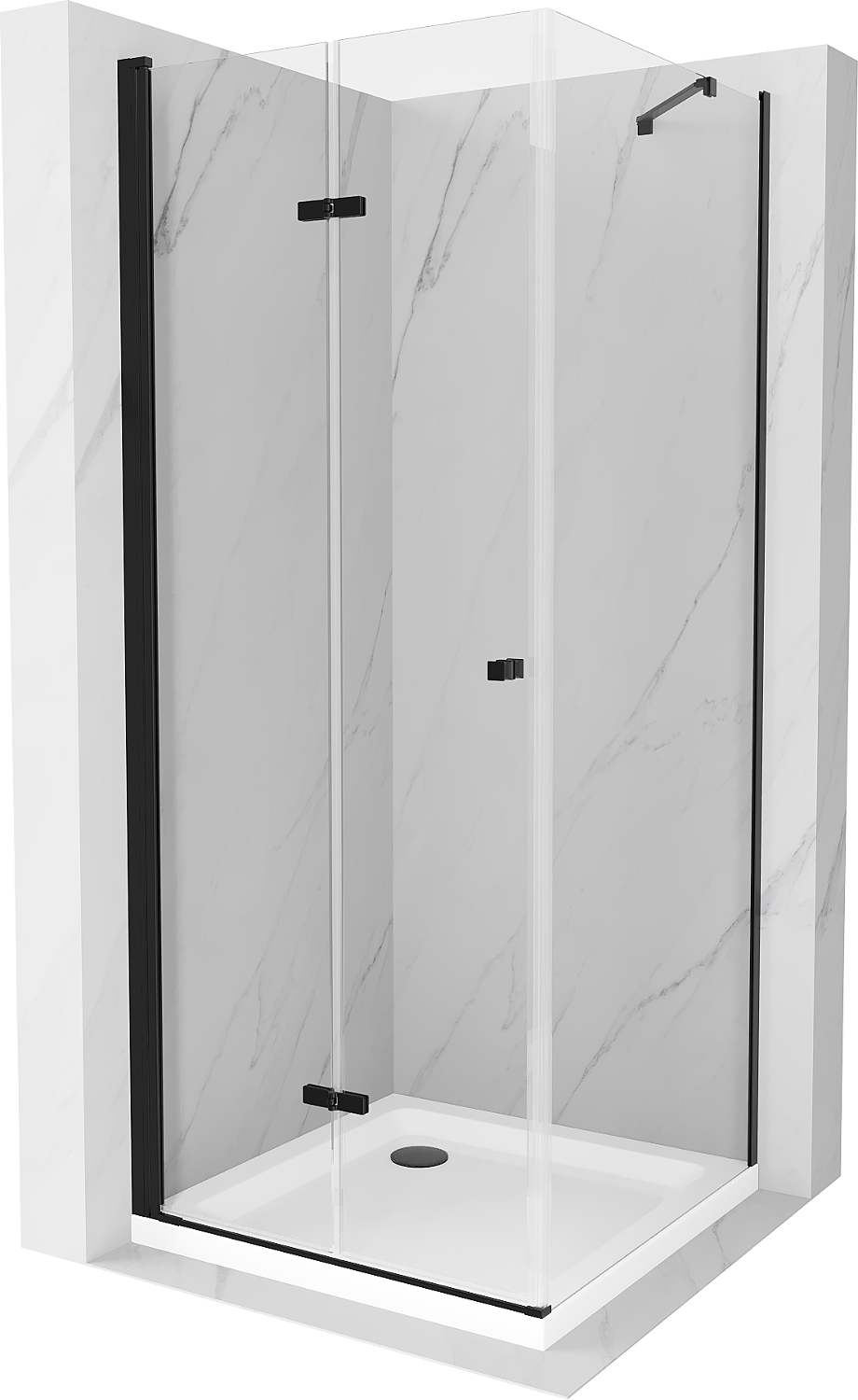 Mexen Lima salokāma dušas kabīne 70 x 70 cm, caurspīdīga, melna + Flat paliktnis, balts - 856-070-070-70-00-4010B