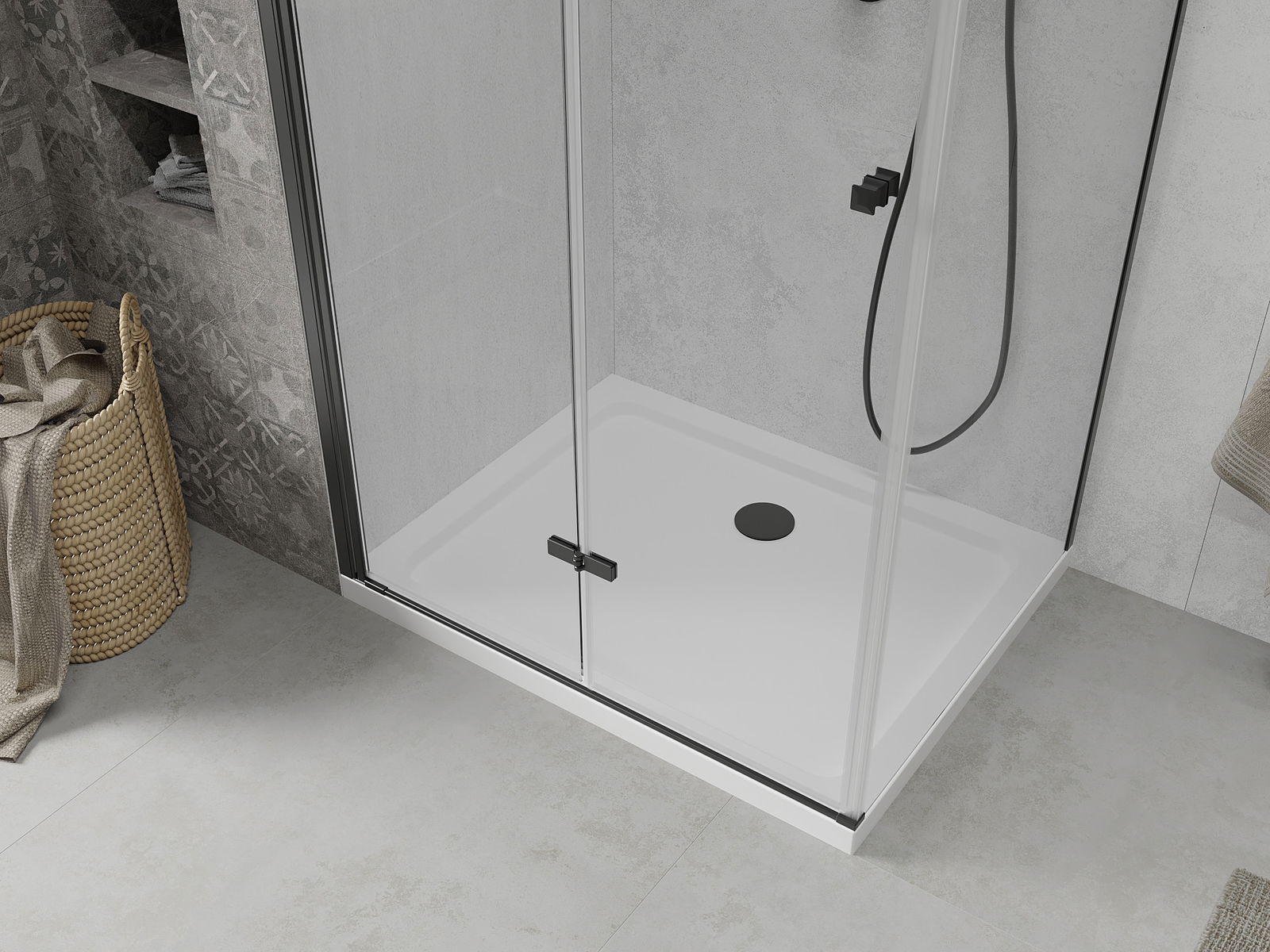 Iespēja salocīt durvis gan uz āru, gan uz iekšpusi, ļauj iegūt vairāk vietas, kad duša netiek izmantota. Tas ir ideāls risinājums mazākām vannas istabām, maksimāli izmantojot pieejamo telpu.