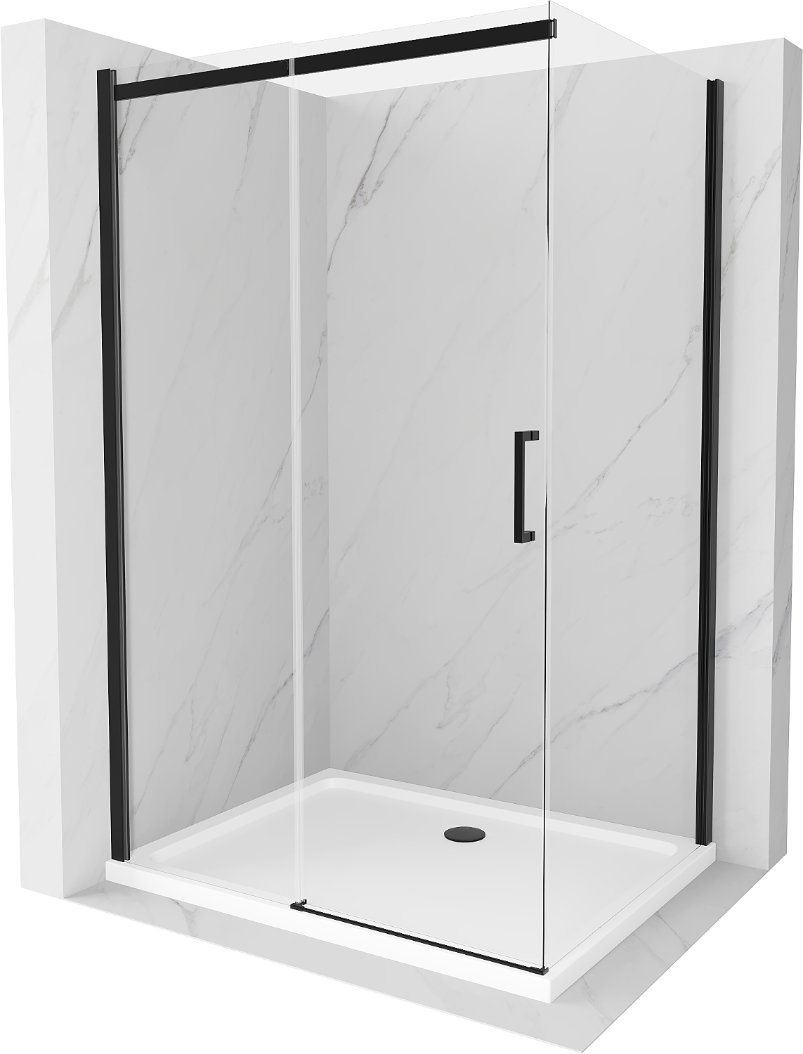 Mexen Omega bīdāmā dušas kabīne 100 x 70 cm, caurspīdīga, melna + plakans dušas paliktnis, balts - 825-100-070-70-00-4010B
