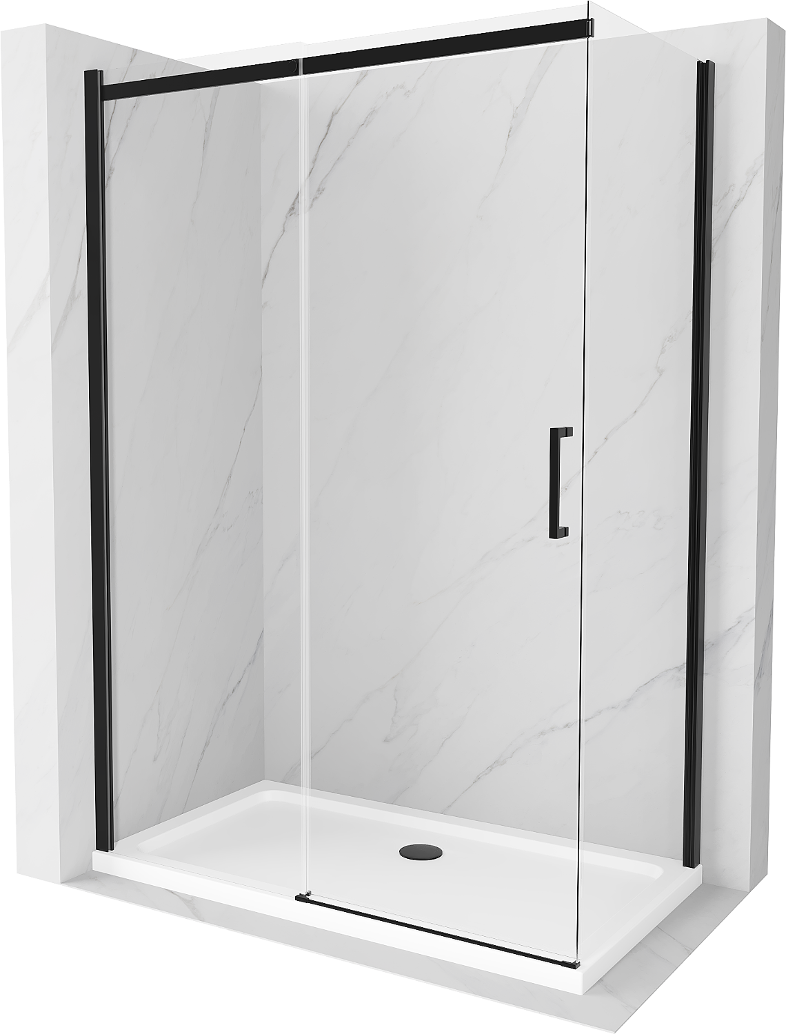 Mexen Omega bīdāmā dušas kabīne 130 x 70 cm, caurspīdīga, melna + Flat dušas paliktnis, balts - 825-130-070-70-00-4010B