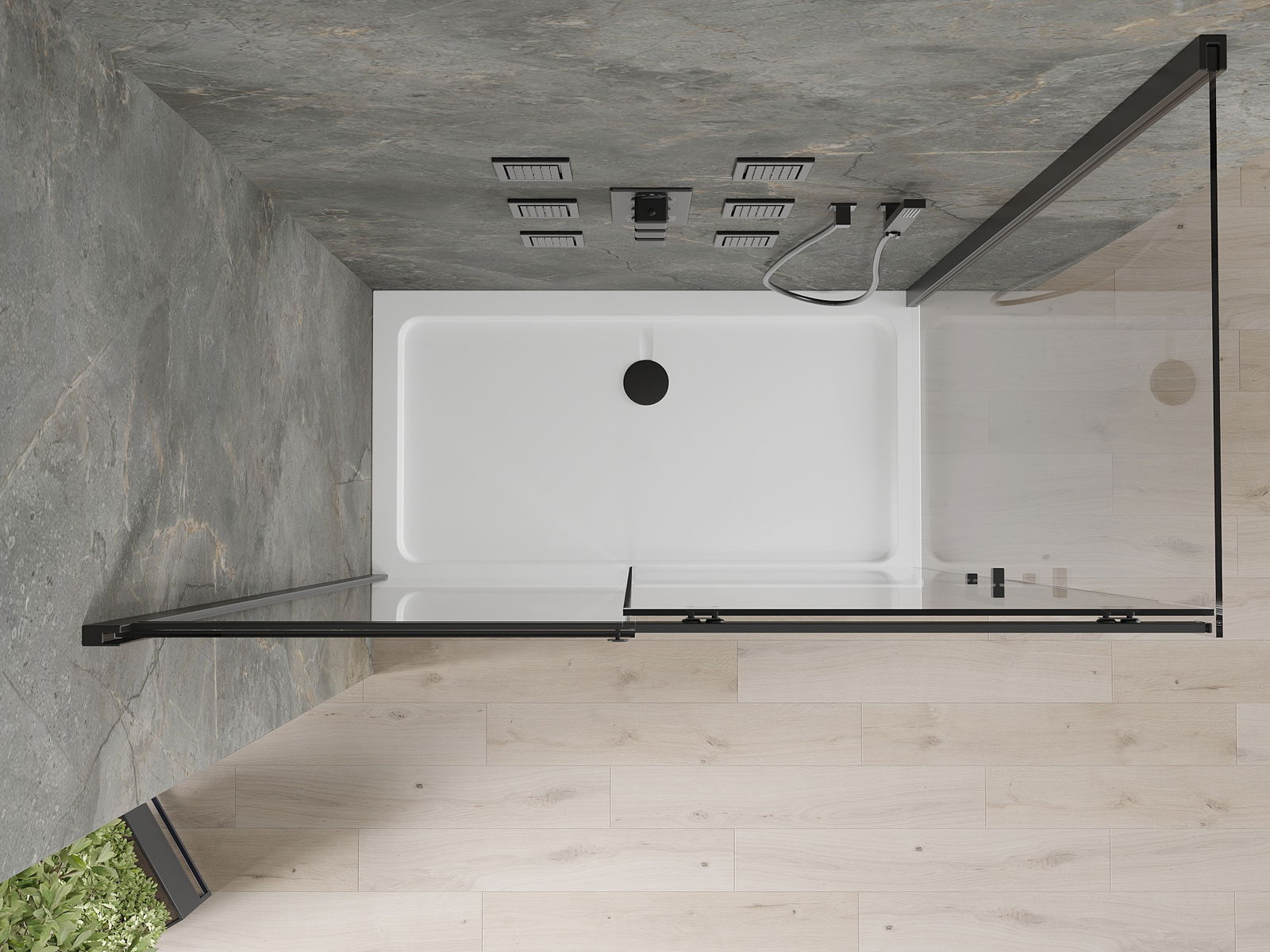 Pateicoties universālajai montāžas sistēmai, dušas durvis var uzstādīt no kreisās vai labās puses, atkarībā no vajadzībām. Tādējādi jūs varat viegli izstrādāt dušu, kas piemērota vannas istabas telpai.