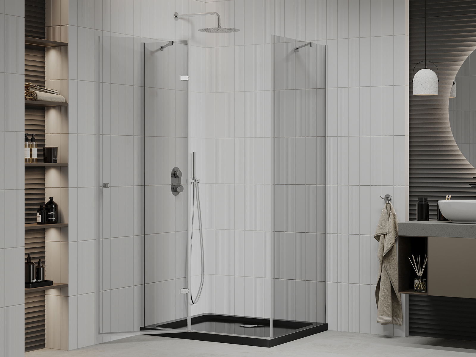 Pateicoties universālās stiprinājumu sistēmas izmantošanai, dušas durvis var tikt uzstādītas no labās vai kreisās puses atkarībā no vajadzībām. Tādejādi vari viegli izplānot dušu, kas pielāgota vannas istabas telpai.