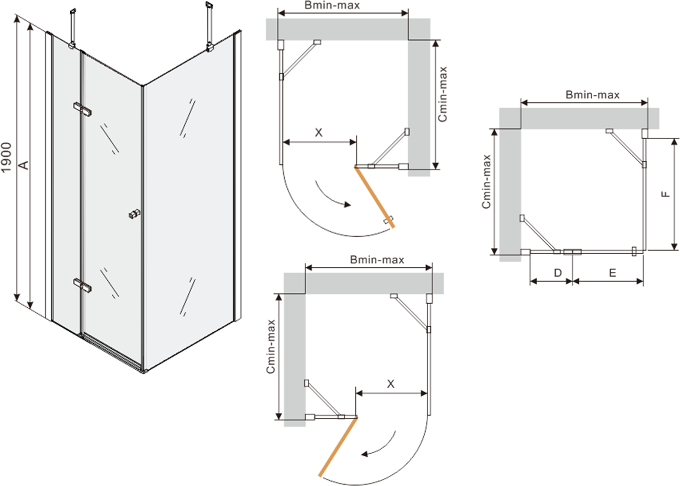 Pateicoties universālajai montāžas sistēmai, dušas durvis var uzstādīt no kreisās vai labās puses, atkarībā no vajadzībām. Tādējādi jūs varat viegli izstrādāt dušu, kas piemērota vannas istabas telpai.