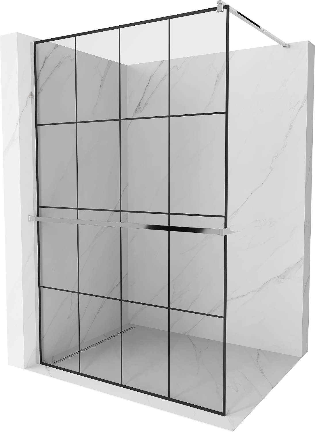 Mexen Kioto+ duša siena ar plauktu Walk-in 140 x 200 cm, melna režģis, hroms - 800-140-121-01-77