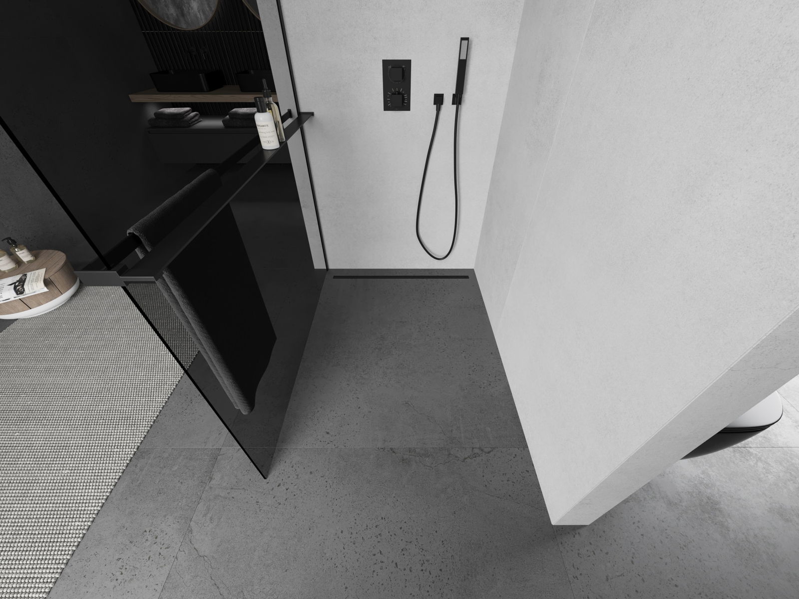 Mexen Kioto+ dušas siena ar plauktu Walk-in 70 x 200 cm, grafīts, melna - 800-070-121-70-40