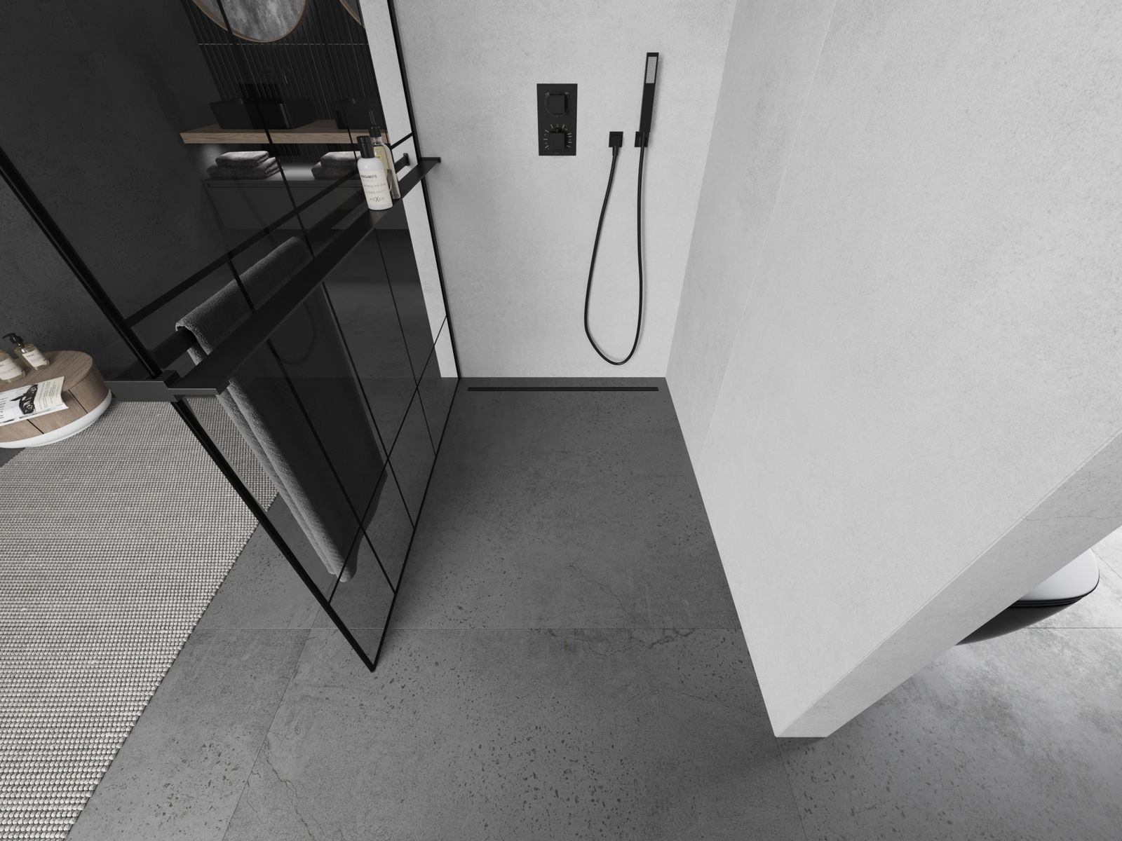 Mexen Kioto+ dušas siena ar plauktu Walk-in 140 x 200 cm, melns raksts, melns - 800-140-121-70-78