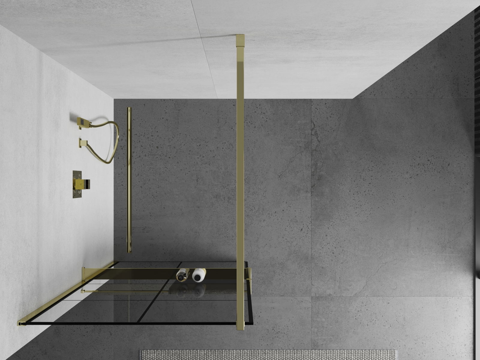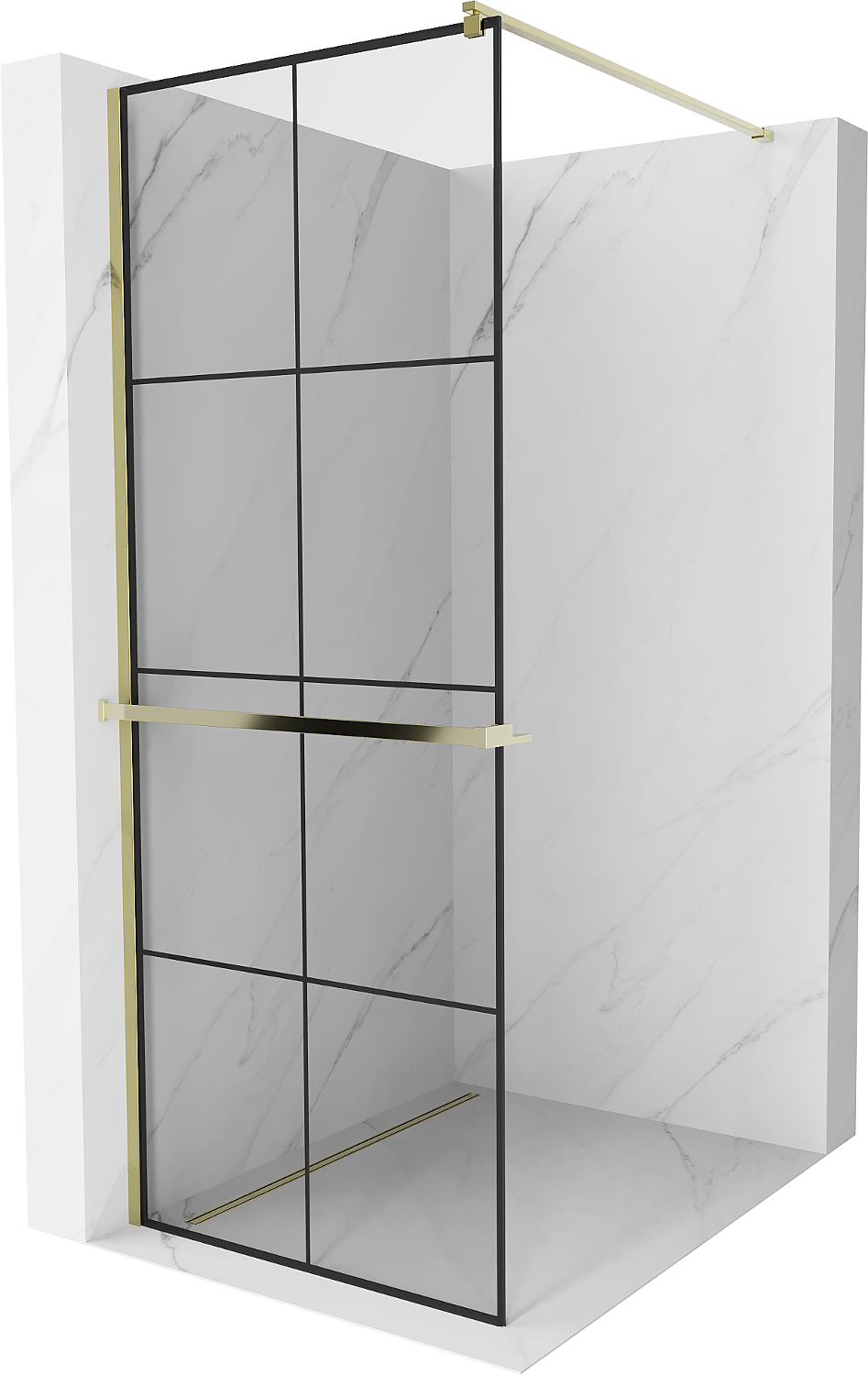 Mexen Kioto+ dušas siena ar plauktu Walk-in 90 x 200 cm, melns režģis, zelta - 800-090-121-50-77