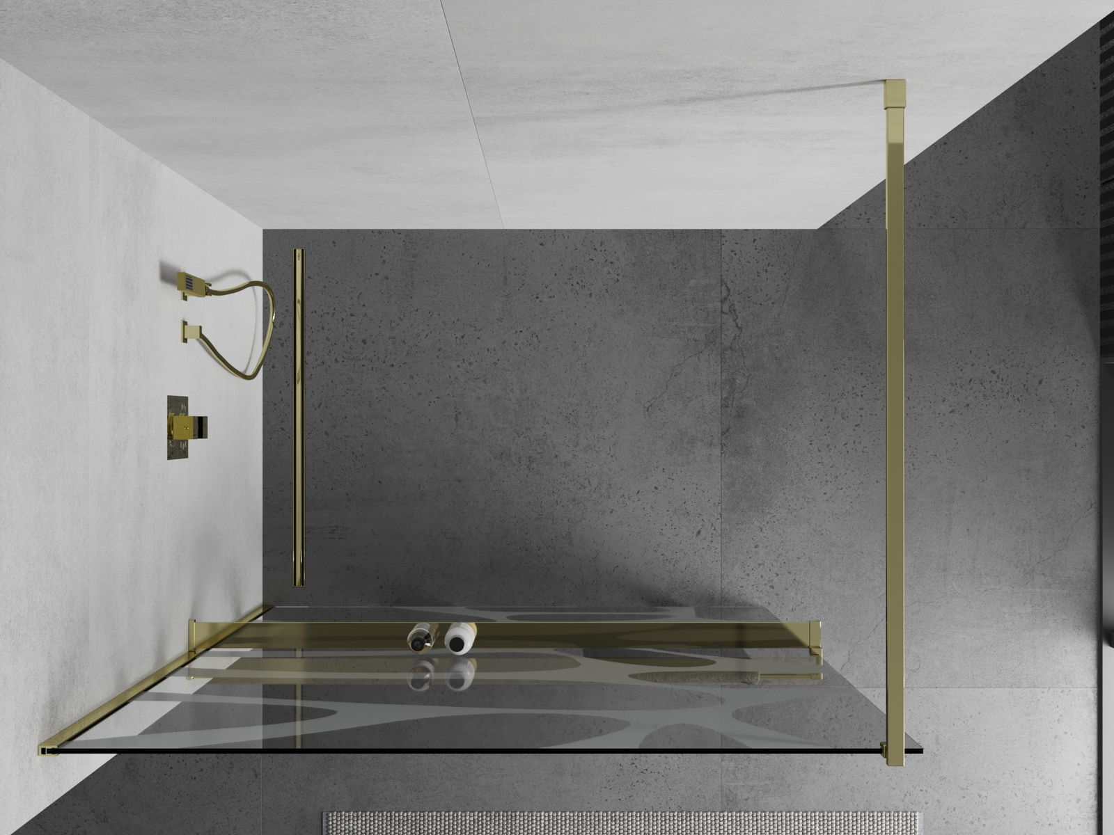 Mexen Kioto+ dušas siena ar plauktu Walk-in 70 x 200 cm, balta viļņa, zelta - 800-070-121-50-97