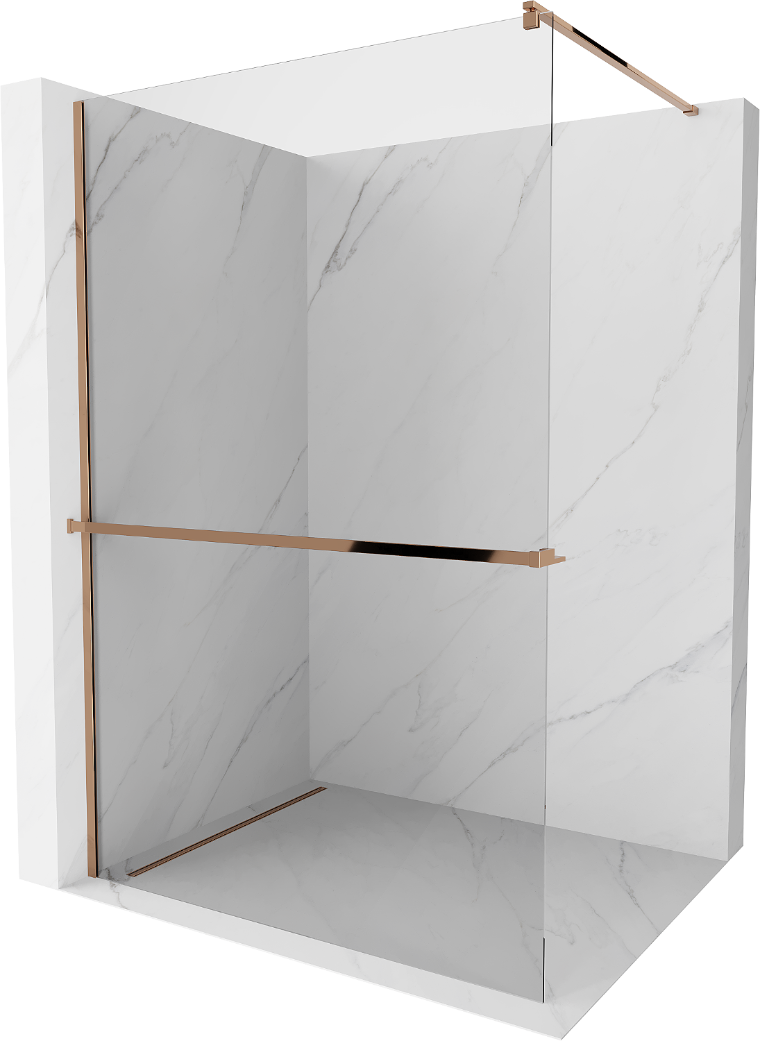 Mexen Kioto+ Dušas siena ar plauktu Walk-in 130 x 200 cm, caurspīdīga, rozā zelts - 800-130-121-60-00