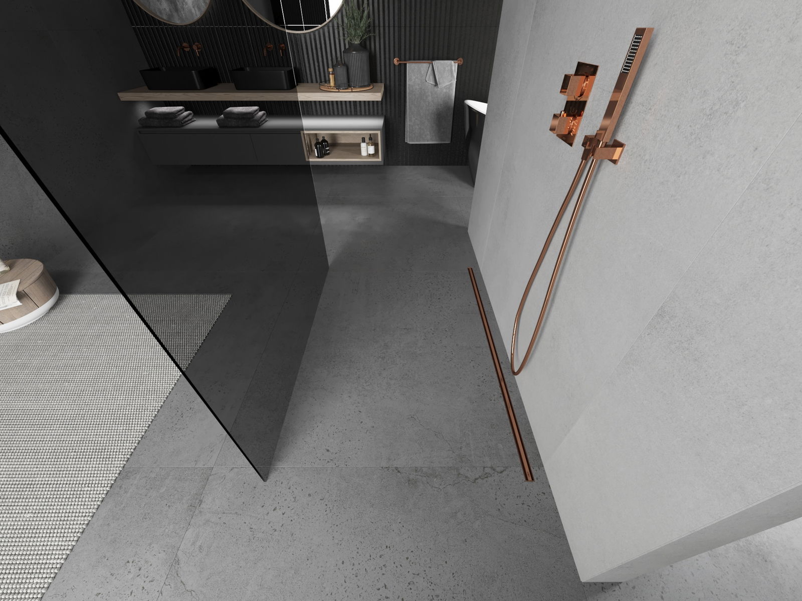 Mexen Kioto brīvi stāvošs dušas ekrāns 110 x 200 cm, grafīts 8 mm, rozā zelts - 800-110-002-60-40