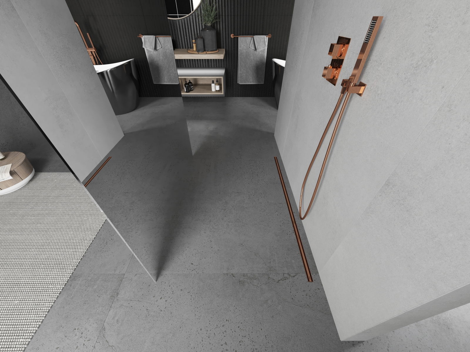 Mexen Kioto brīvi stāvoša dušas siena 100 x 200 cm, spogulis 8 mm, rozā zelts - 800-100-002-60-50