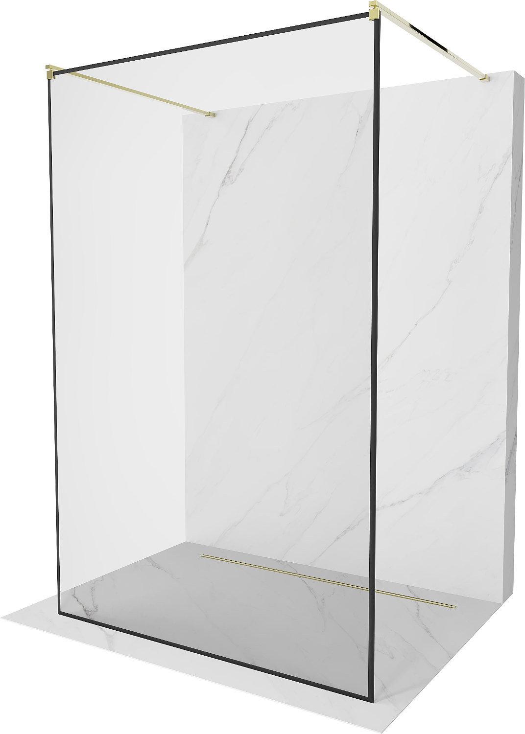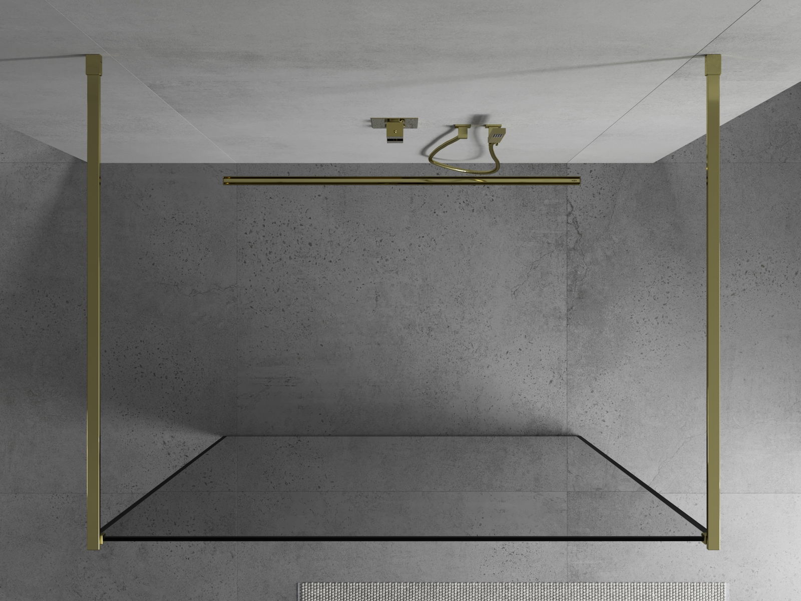Mexen Kioto brīvi stāvoša dušas siena 100 x 200 cm, melns ietvars 8 mm, zelta - 800-100-002-50-70