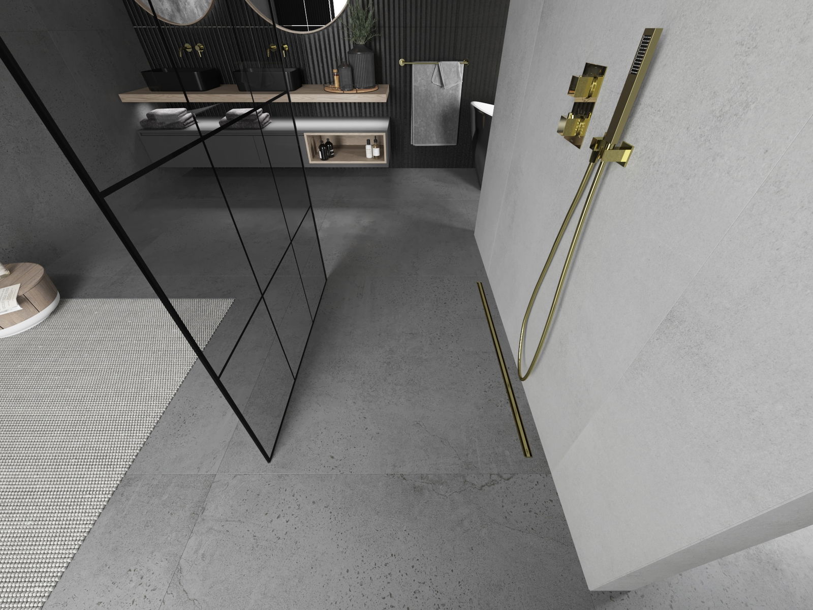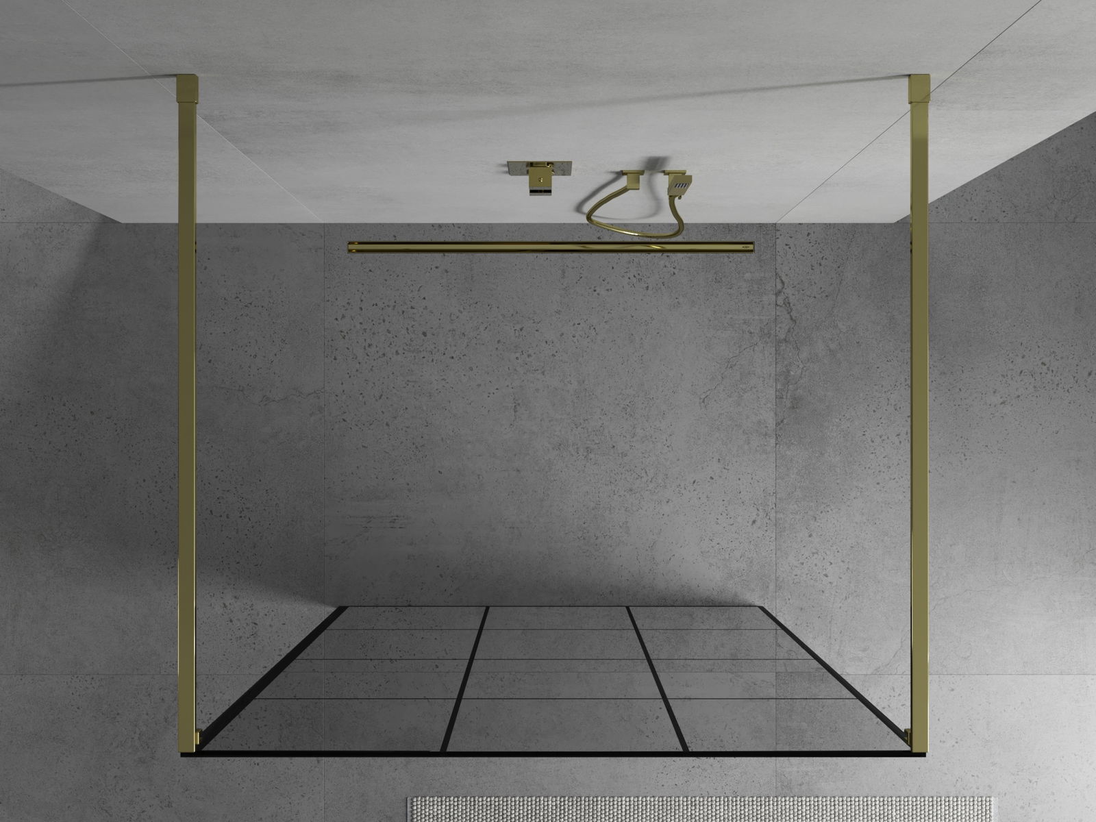 Mexen Kioto brīvi stāvoša dušas siena 120 x 200 cm, melns režģis 8 mm, zelta - 800-120-002-50-77