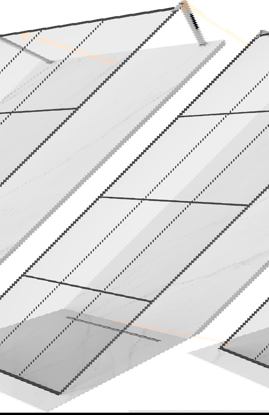 Mexen Kioto brīvi stāvoša dušas siena 100 x 200 cm, melna režģis 8 mm, rozā zelts - 800-100-002-60-77