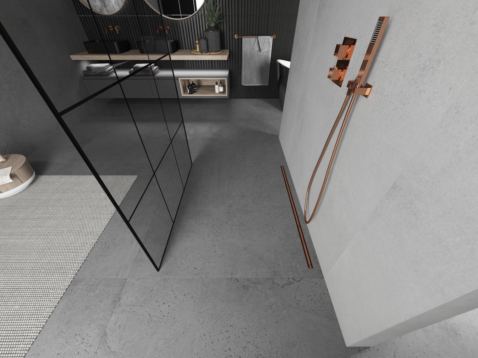 Mexen Kioto Brīvi stāvoša dušas siena 120 x 200 cm, melna režģa 8 mm, rozā zelts - 800-120-002-60-77