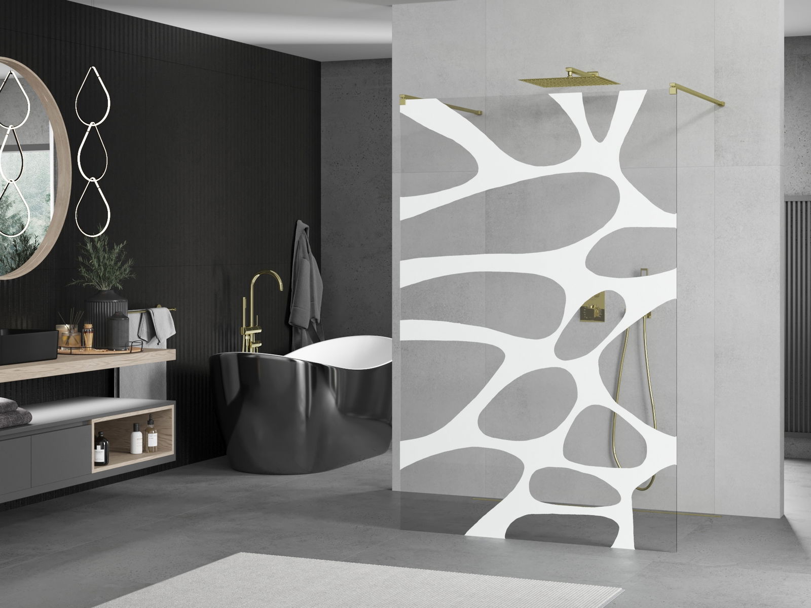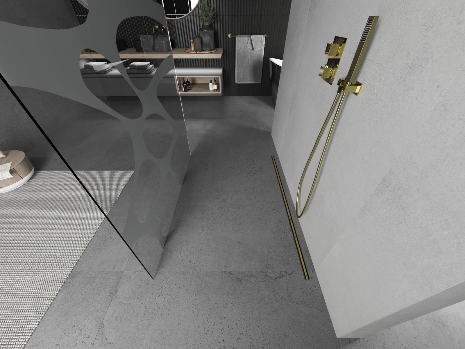 Mexen Kioto brīvi stāvoša dušas siena 120 x 200 cm, balts vilnis 8 mm, zelta - 800-120-002-50-97