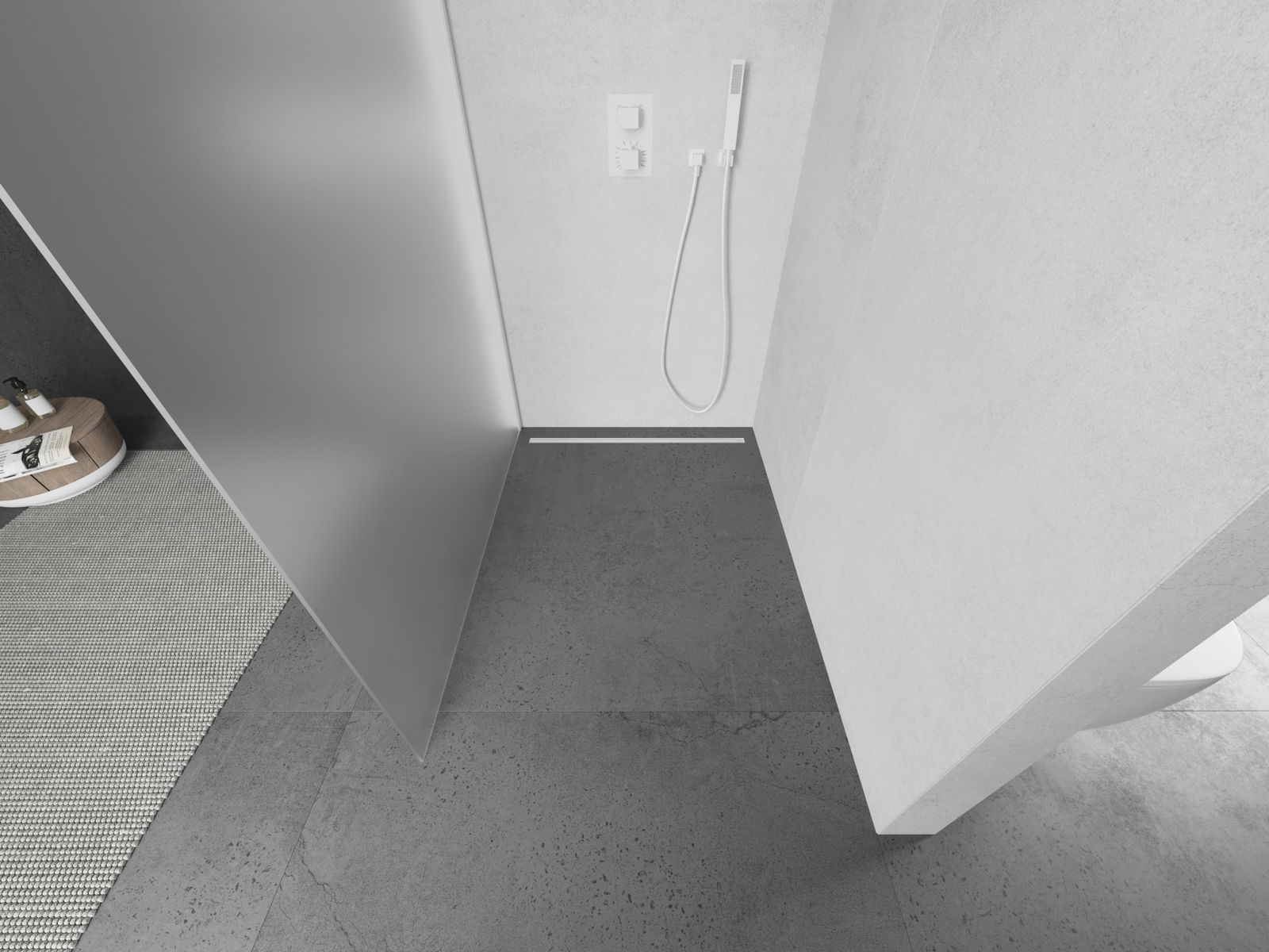 Produktu, atkarībā no vajadzībām, var uzstādīt gan uz dušas paliktņa, gan tieši uz grīdas. Universālā montāžas metode ļauj pielāgot produktu dažāda veida vannas istabām un telpas konfigurācijām.