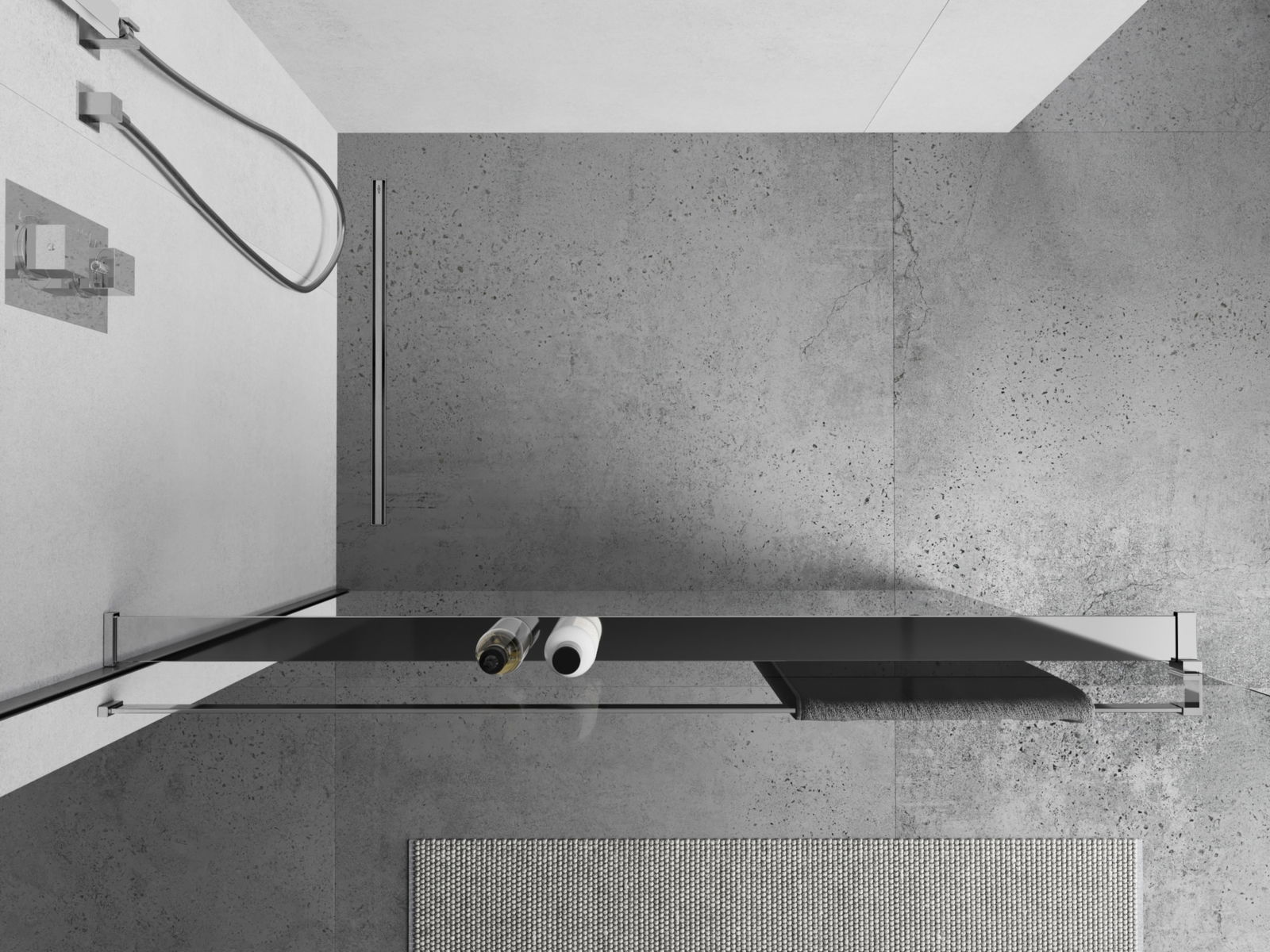 Dušas sienas plaukts ir izgatavots no izturīga alumīnija, kas nodrošina tā izcilu mitruma un korozijas izturību. Plaukts piedāvā ērtu vietu kosmētikas un aksesuāru novietošanai, palīdzot uzturēt kārtību dušas zonā.