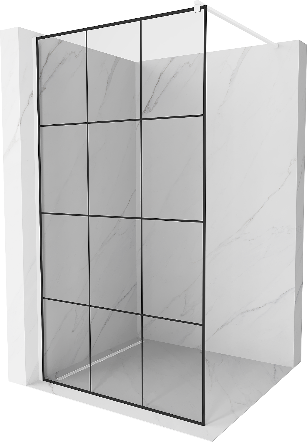 Mexen Kioto duša sienas Walk-in 110 x 200 cm, melns režģis 8 mm, balts - 800-110-101-20-77