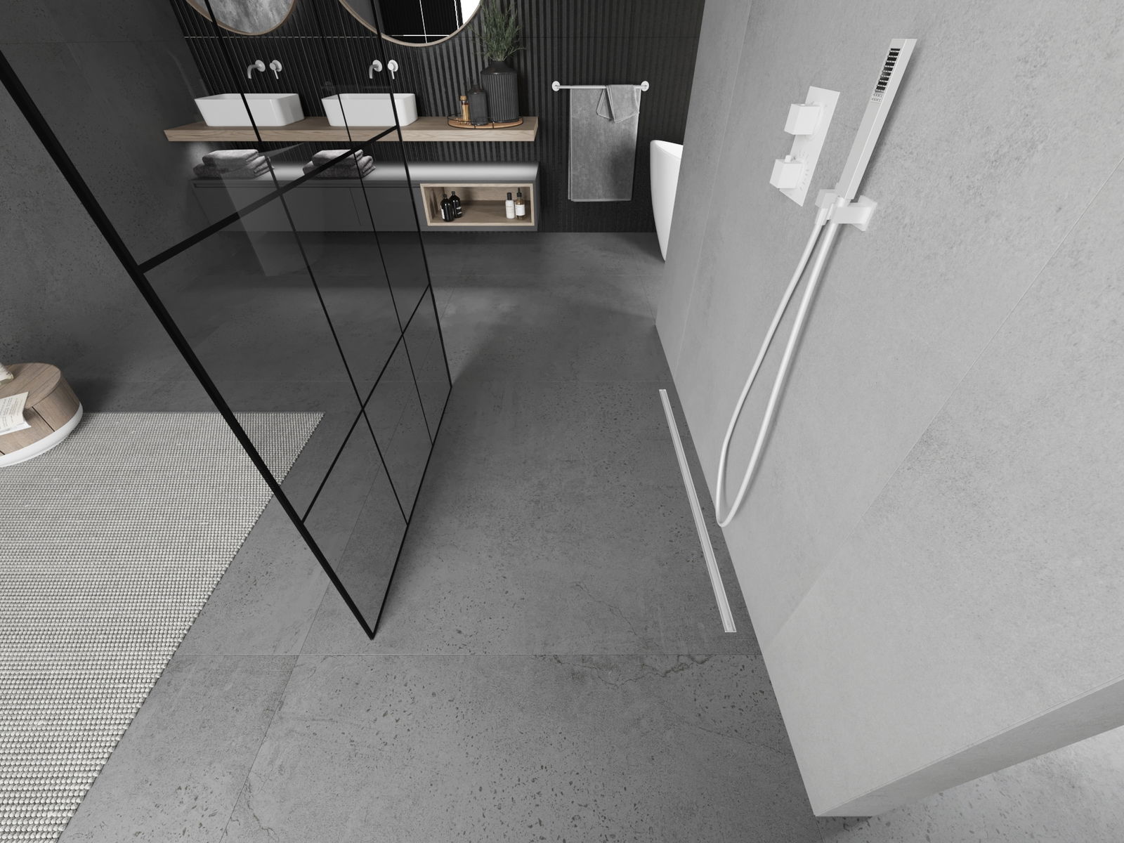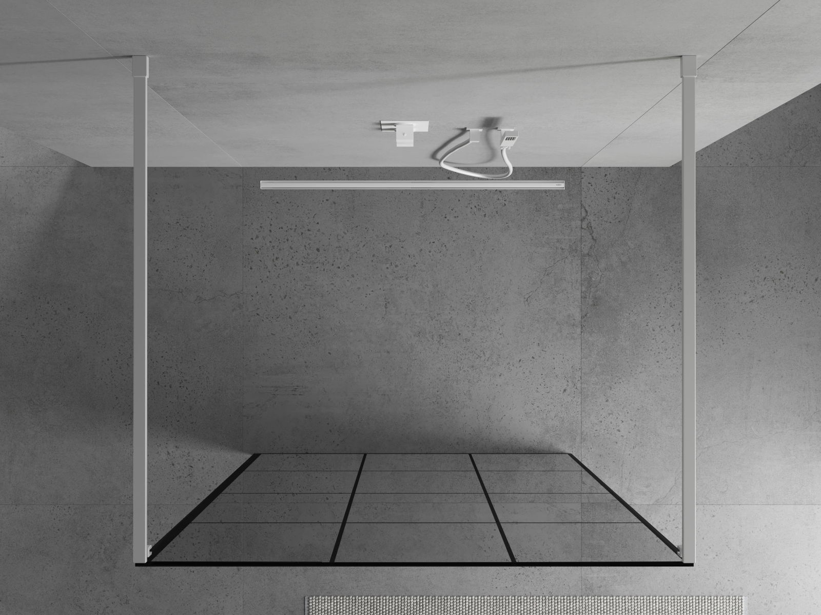 Mexen Kioto brīvi stāvoša dušas sienas 110 x 200 cm, melns režģis 8 mm, balts - 800-110-002-20-77