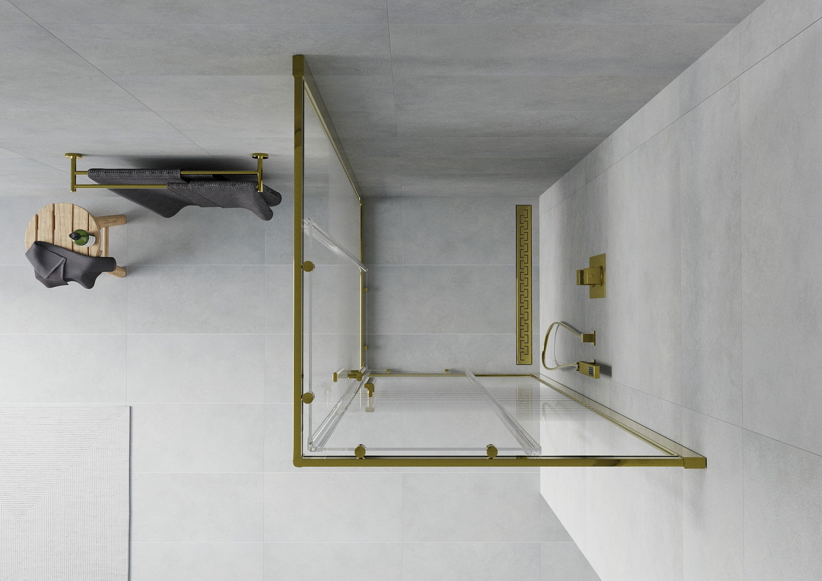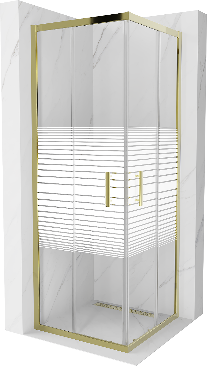 Mexen Rio dušas kabīne kvadrāta forma 70 x 70 cm, baltas svītras, zelta - 860-070-070-50-20