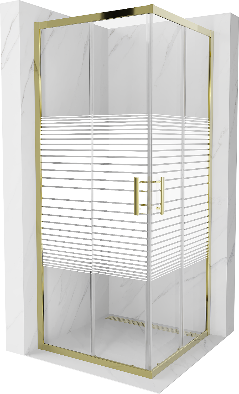 Mexen Rio kvadrātiska dušas kabīne 80 x 80 cm, baltas svītras, zelta - 860-080-080-50-20