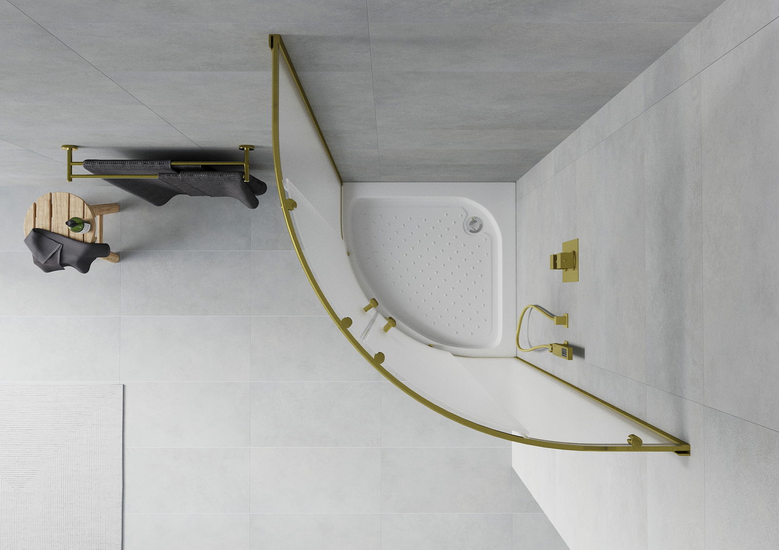 Mexen Rio dušas kabīne pusapaļa 80 x 80 cm, matēta, zelta + dušas paliktnis , balts - 863-080-080-50-30-4710