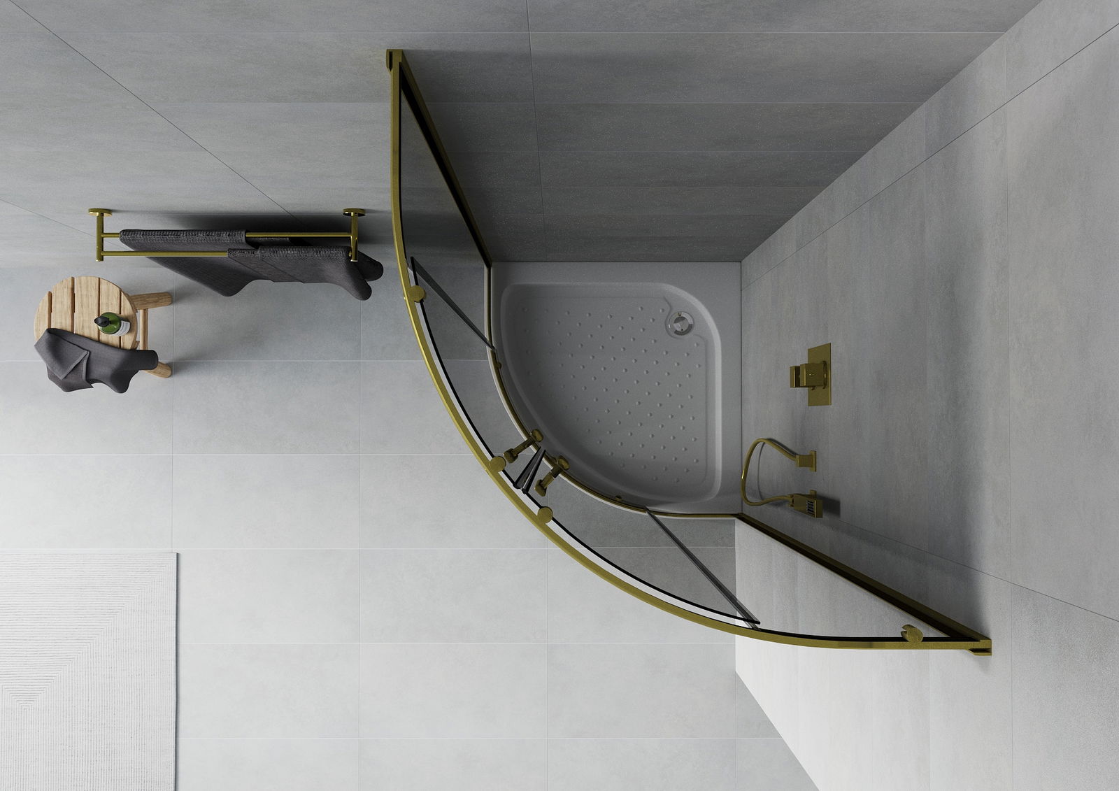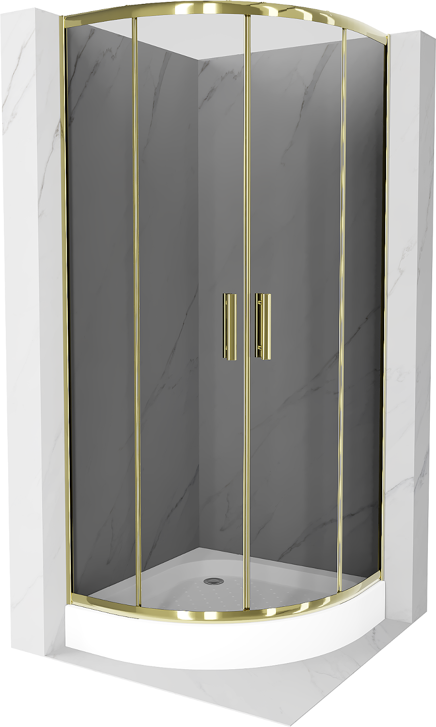 Mexen Rio duša kabīne pusaplis 90 x 90 cm, grafīts, zelts + paliktnis, balts - 863-090-090-50-0-4710