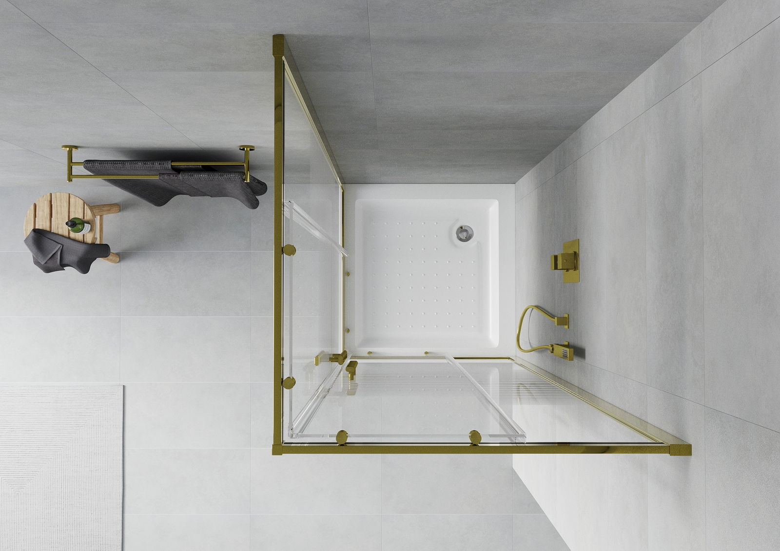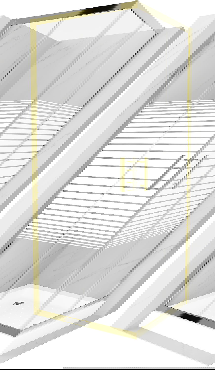 Mexen Rio kvadrātveida dušas kabīne 70 x 70 cm, baltas joslas, zelta + dušas pamats, balts - 860-070-070-50-20-4510