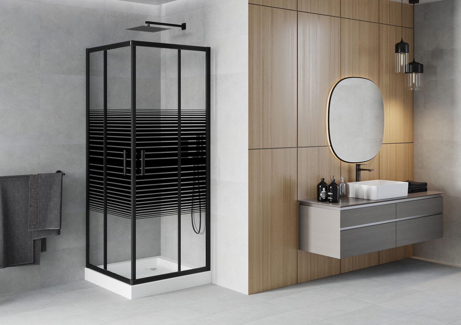 Mexen Rio dušas kabīne kvadrātveida 90 x 90 cm, caurspīdīga, melna - 860-090-090-70-00