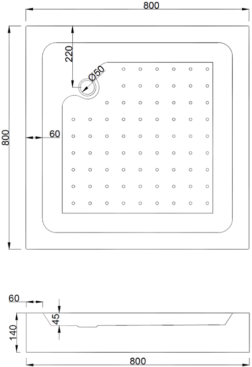 Dušas paliktņa tehniskie dati: