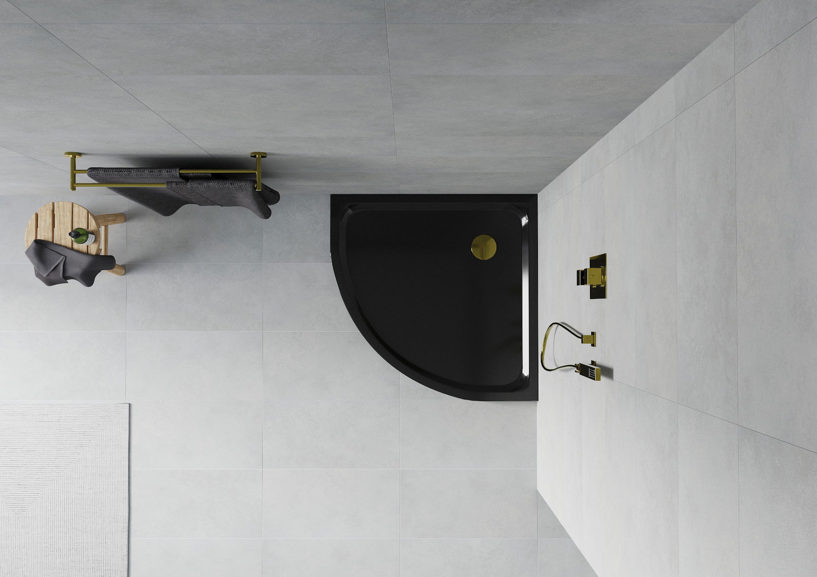 Piedāvājam pusapaļo dušas paliktni slim ar izmēriem 100 x 100 cm elegantā melnā krāsā. Izgatavots no augstas kvalitātes sanitārā akrila, nodrošina izturību un estētiskumu. Tā īpaši sekla augstums 5 cm un dziļums 12 mm padara to ideāli piemērotu mūsdienu vannas istabām. Komplektā ietilpst viegli tīrāms sifons, kas atvieglo lietošanu. Zelta aizbāžņa apdare piešķir eleganci un stilu, padarot šo produktu gan funkcionālu, gan stilīgu papildinājumu jebkurai vannas istabai.