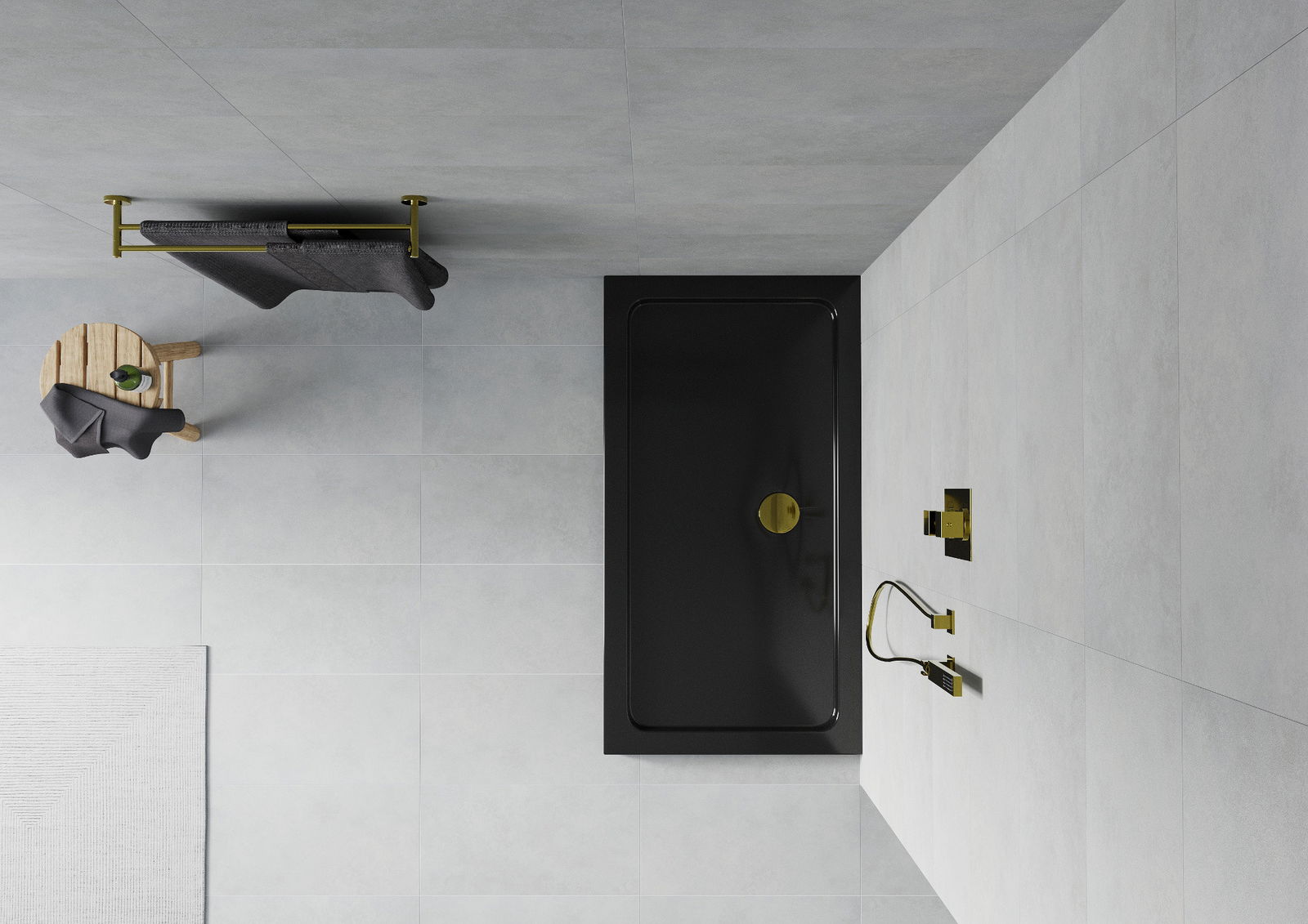 Mexen Flat taisnstūra dušas paliktnis, plānais 130 x 70 cm, melns, sifons zelta - 40707013G