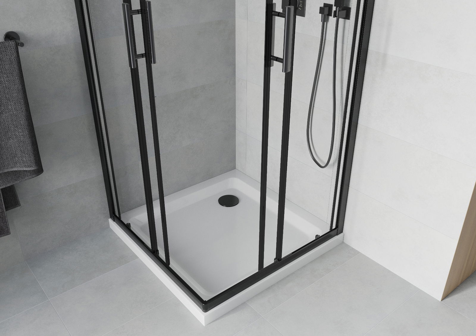 Mexen Rio dušas kabīne kvadrātveida 90 x 90 cm, caurspīdīga, melna - 860-090-090-70-00
