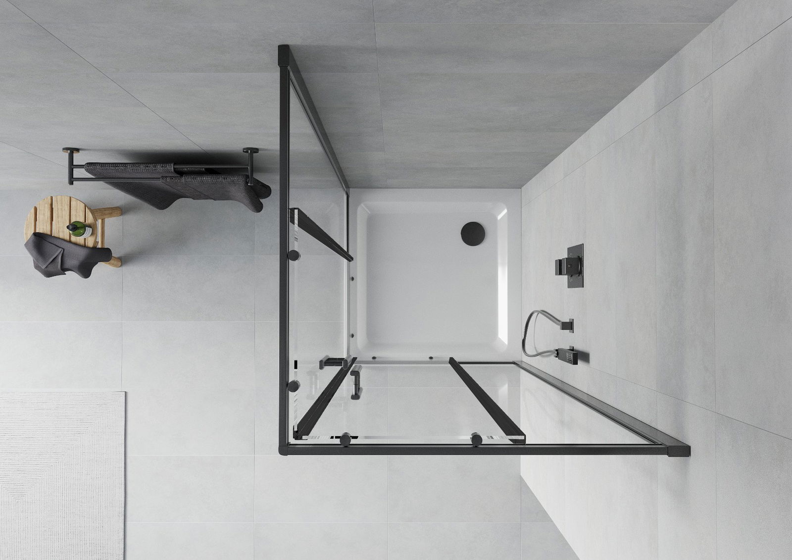 Mexen Rio dušas kabīne kvadrātveida 90 x 90 cm, caurspīdīga, melna - 860-090-090-70-00
